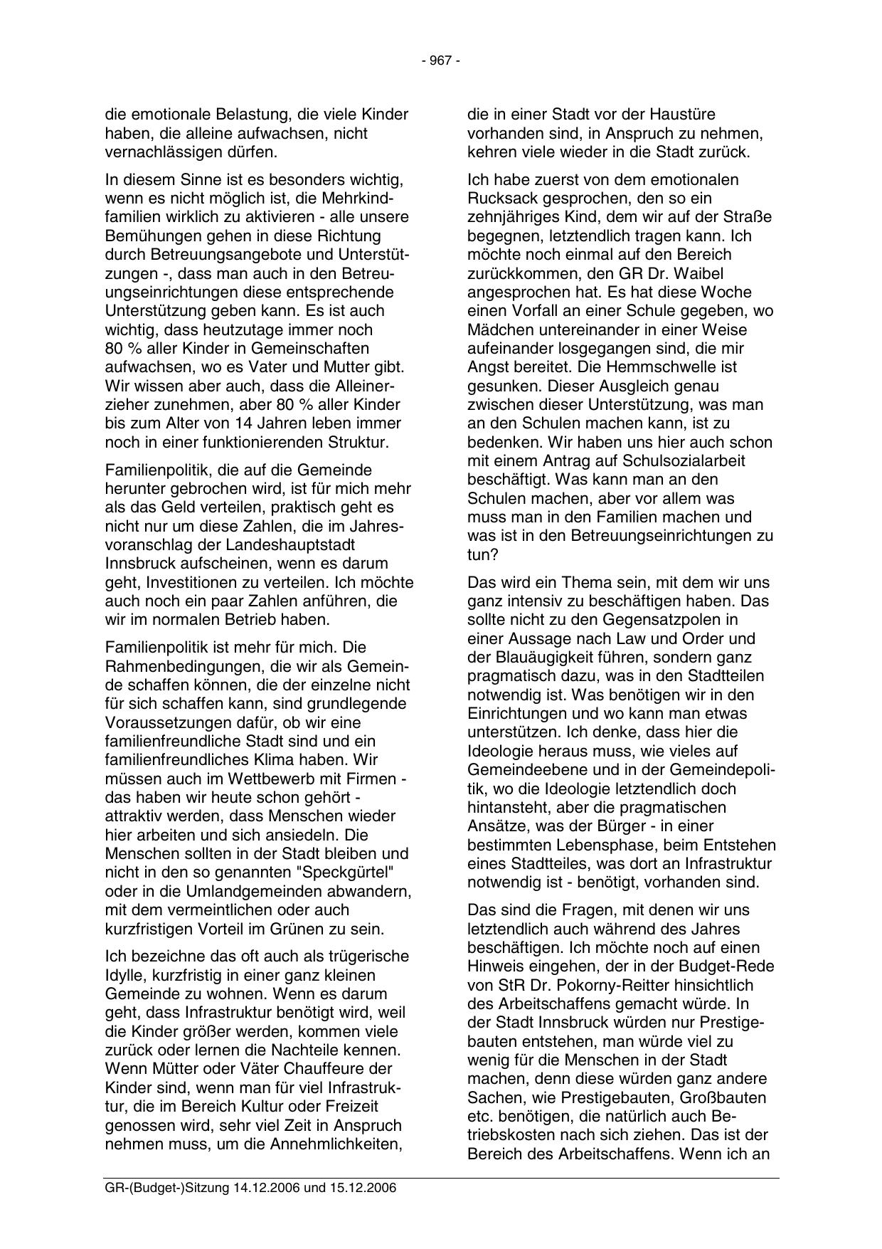 GR-(Budget-)Sitzung 14.12.2006 und 15.12.2006
