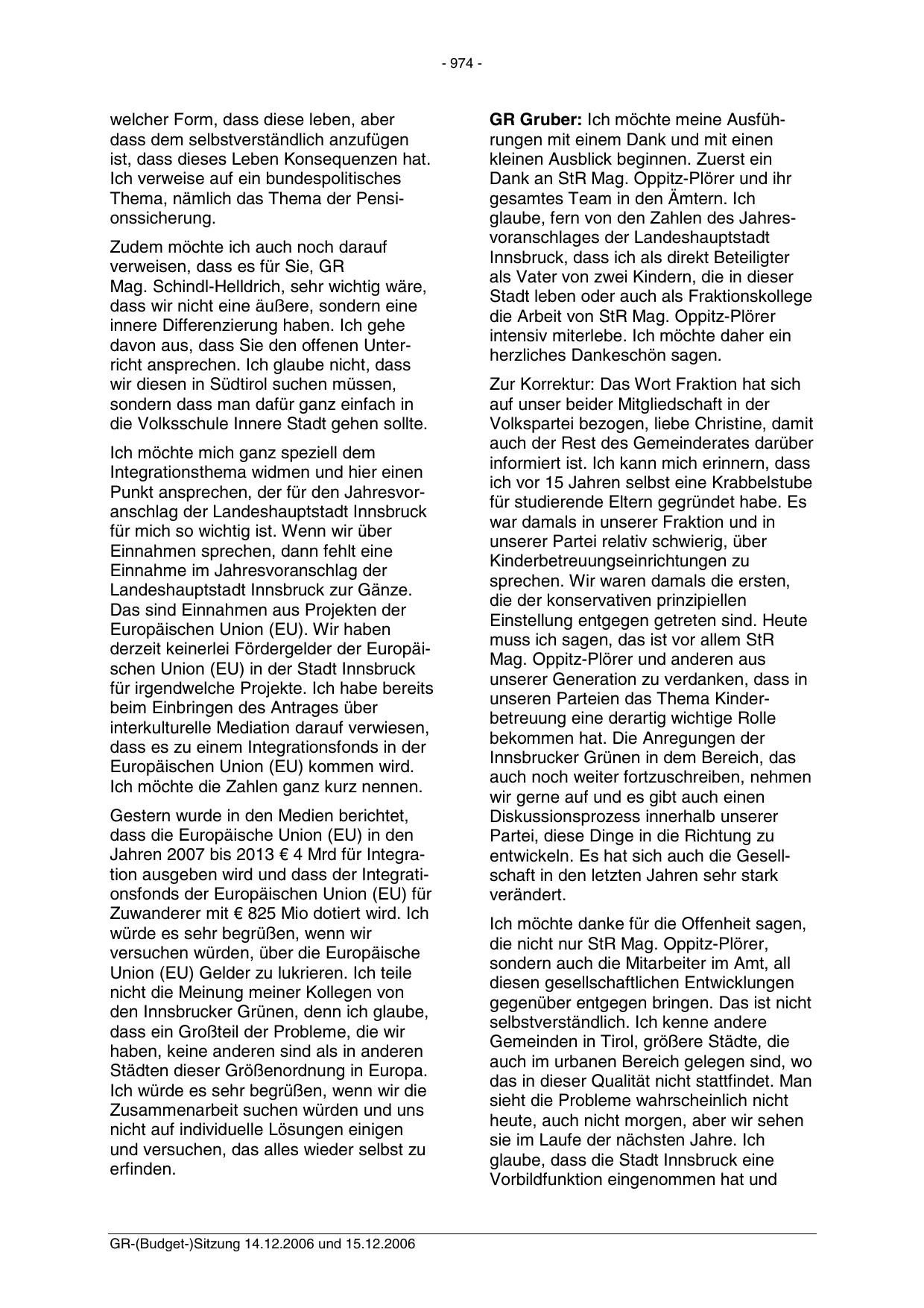 GR Gruber: Ich möchte meine Ausführungen mit einem Dank und mit einen