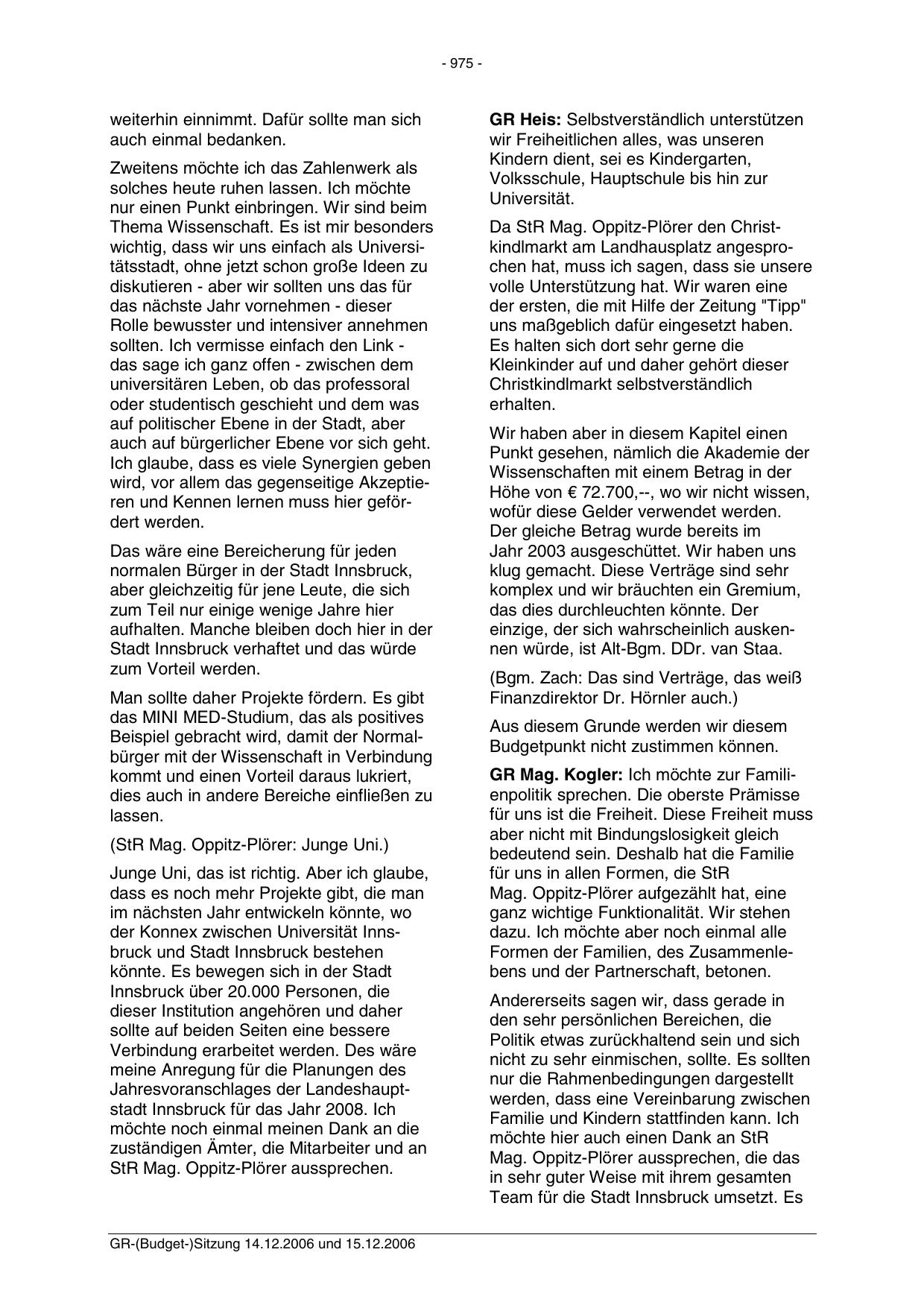 GR-(Budget-)Sitzung 14.12.2006 und 15.12.2006