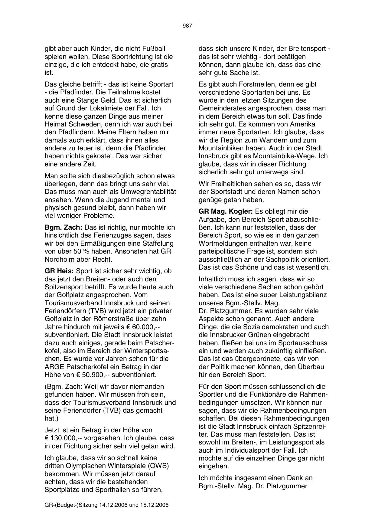 GR-(Budget-)Sitzung 14.12.2006 und 15.12.2006