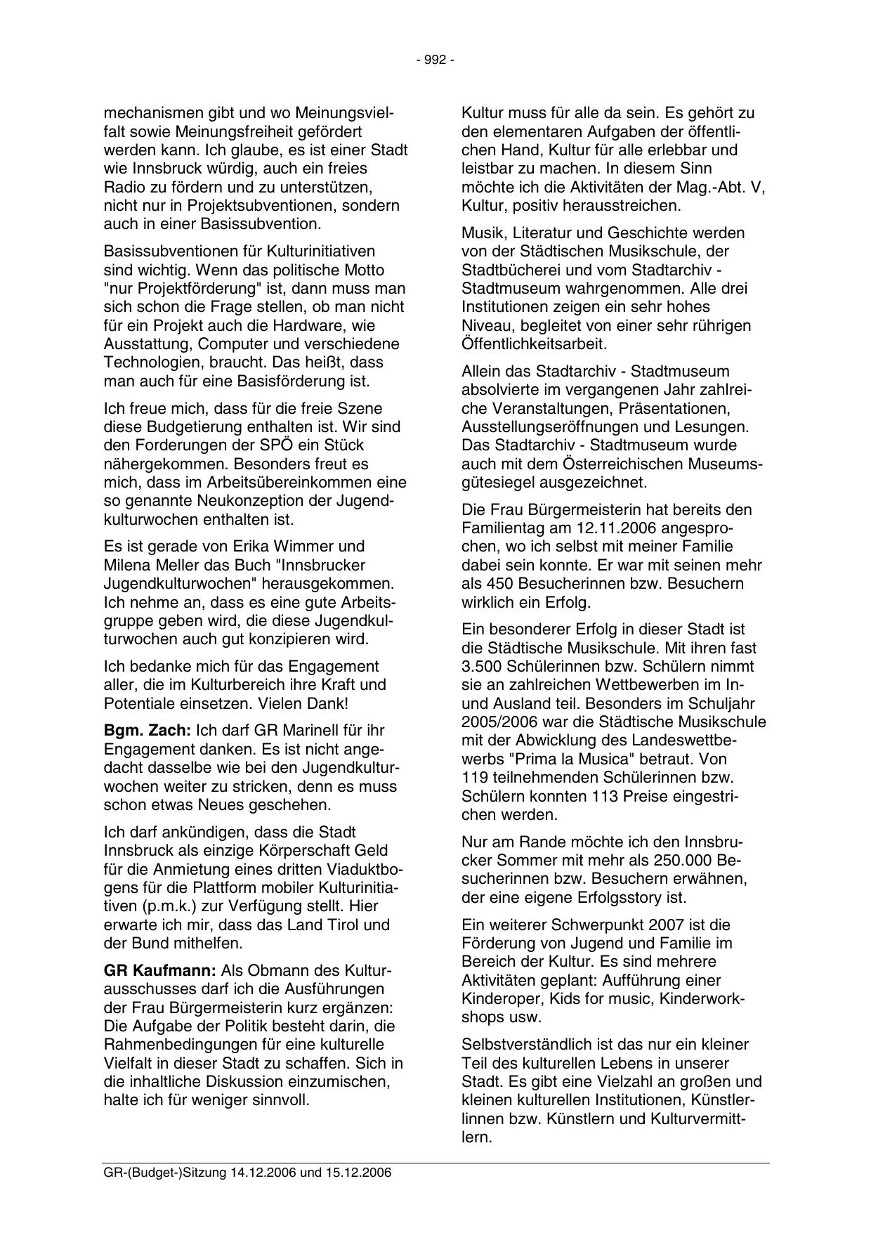 GR-(Budget-)Sitzung 14.12.2006 und 15.12.2006