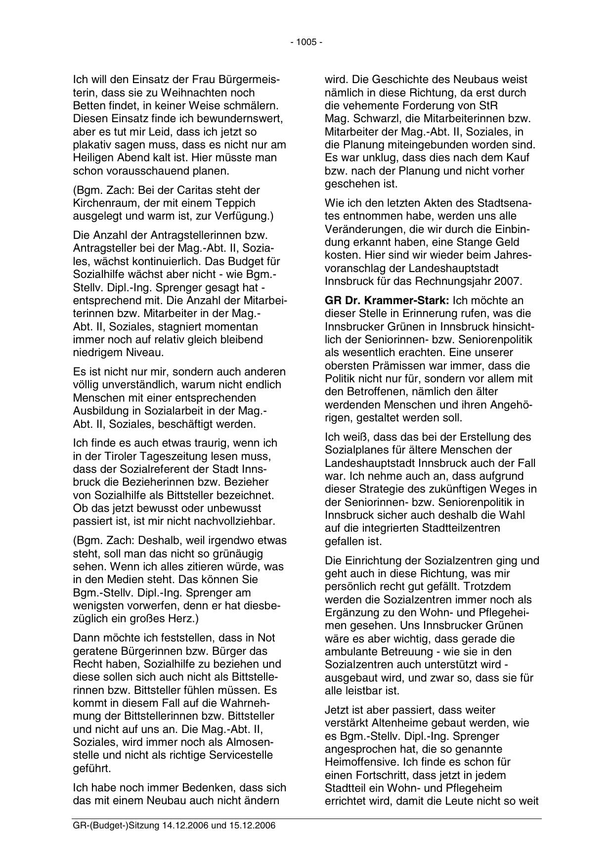 GR-(Budget-)Sitzung 14.12.2006 und 15.12.2006