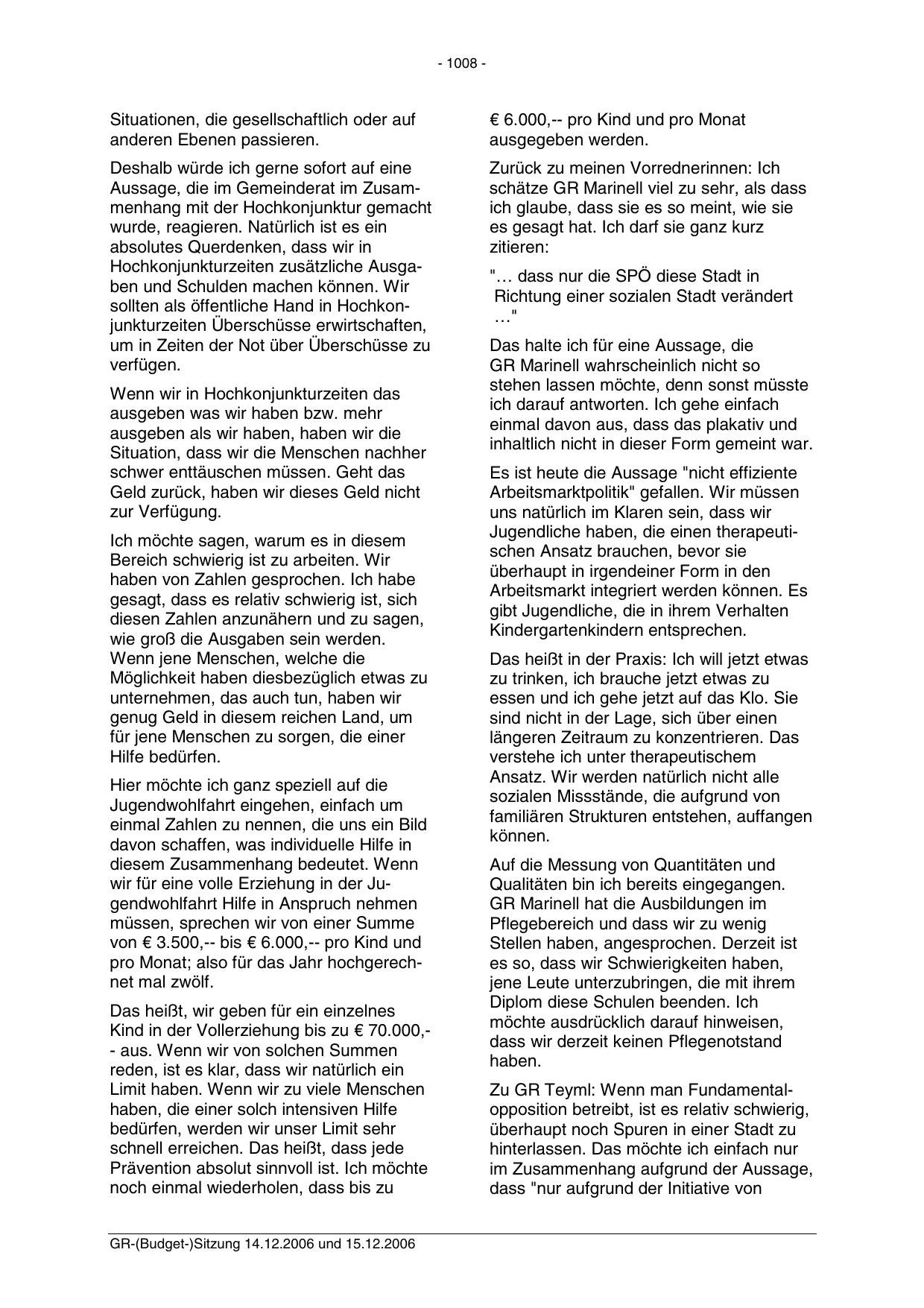 GR-(Budget-)Sitzung 14.12.2006 und 15.12.2006