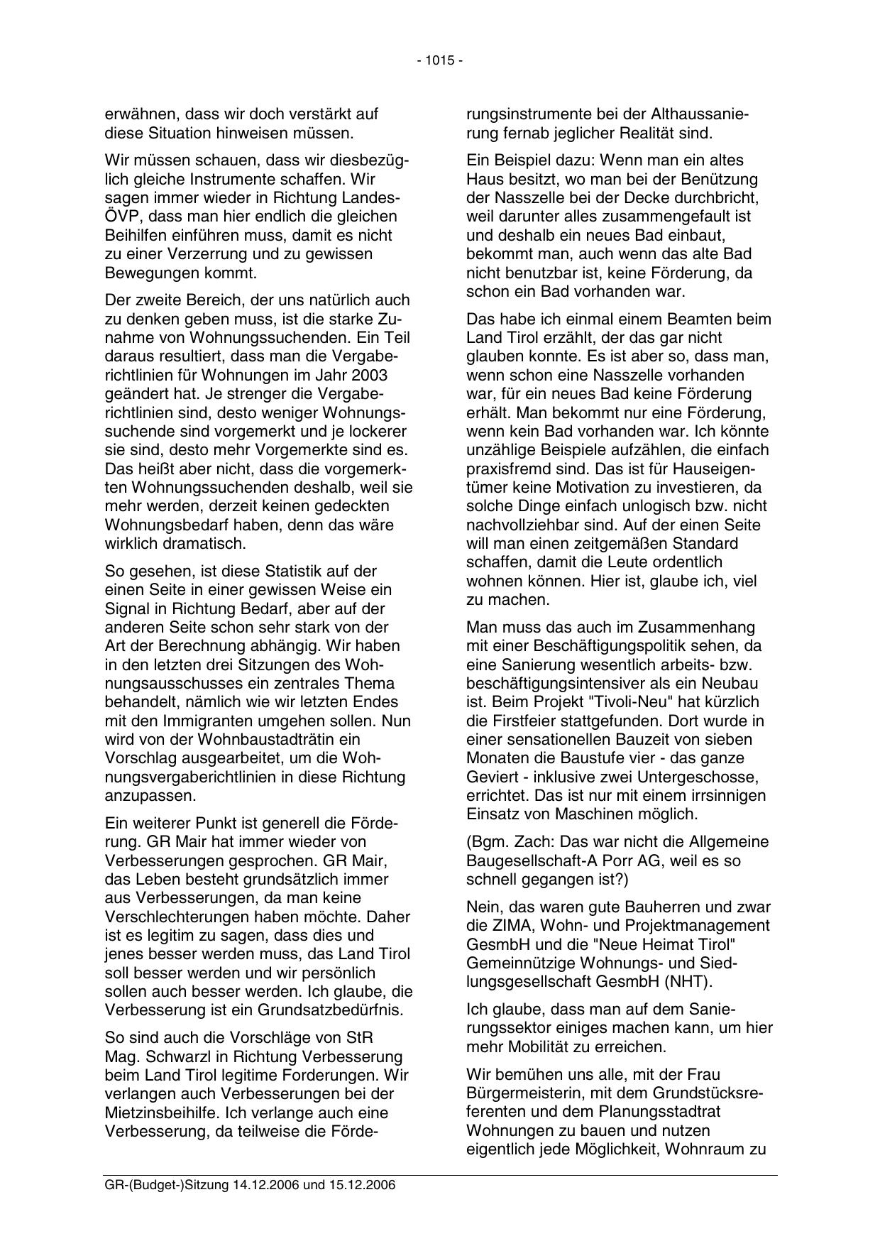 Ein weiterer Punkt ist generell die Förderung. GR Mair hat immer wieder von
