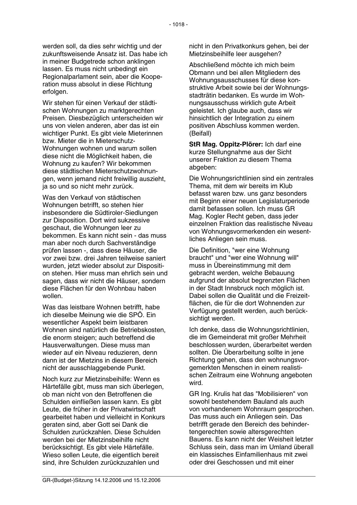 StR Mag. Oppitz-Plörer: Ich darf eine