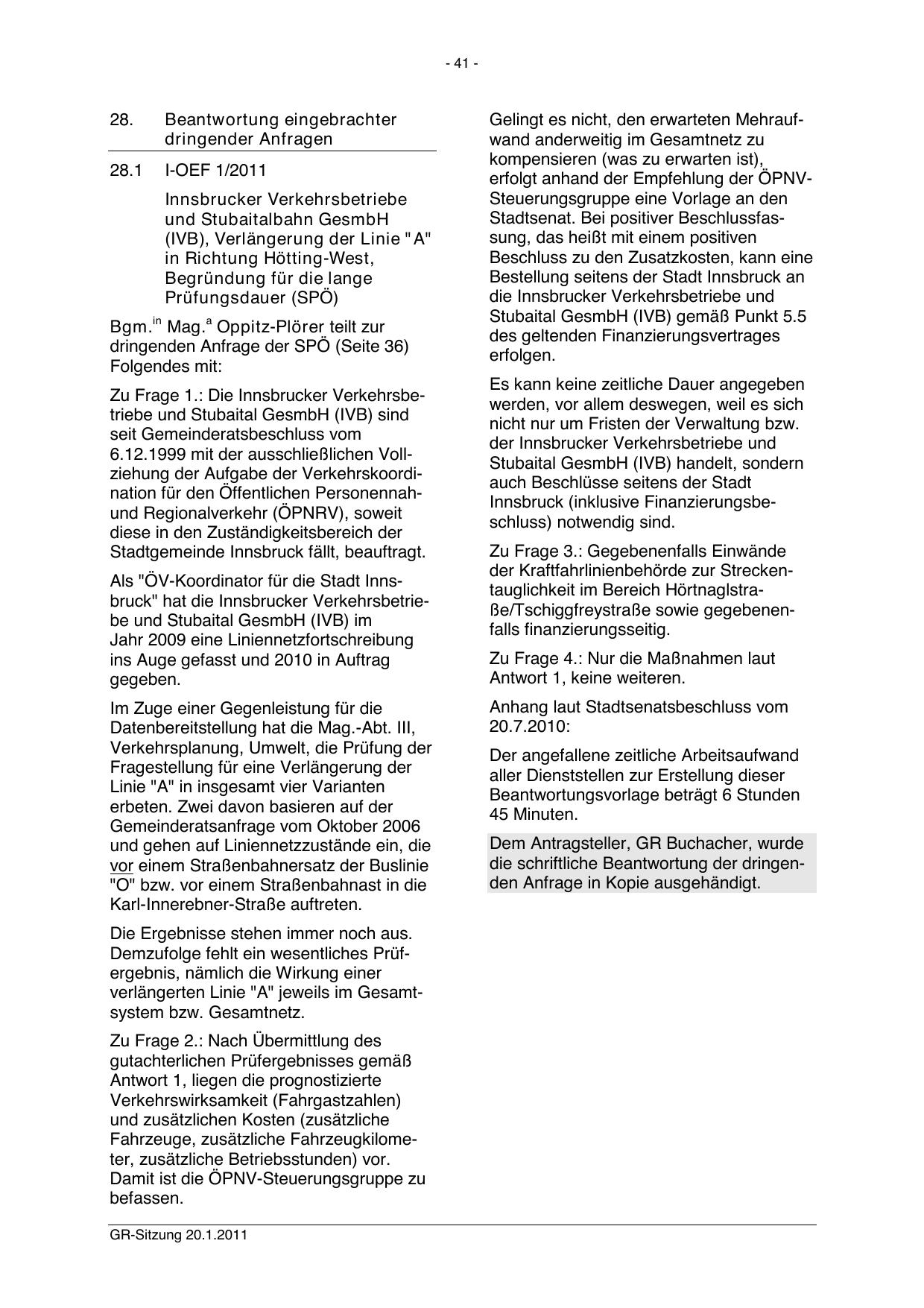 Zu Frage 1.: Die Innsbrucker Verkehrsbetriebe und Stubaital GesmbH (IVB) sind