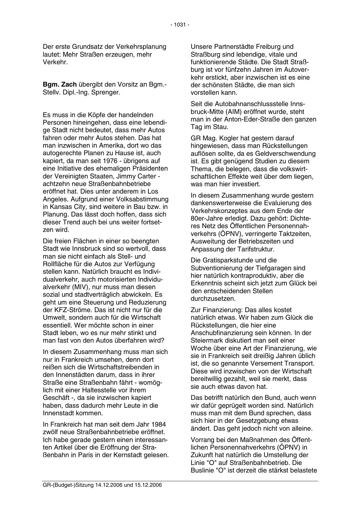 GR-(Budget-)Sitzung 14.12.2006 und 15.12.2006