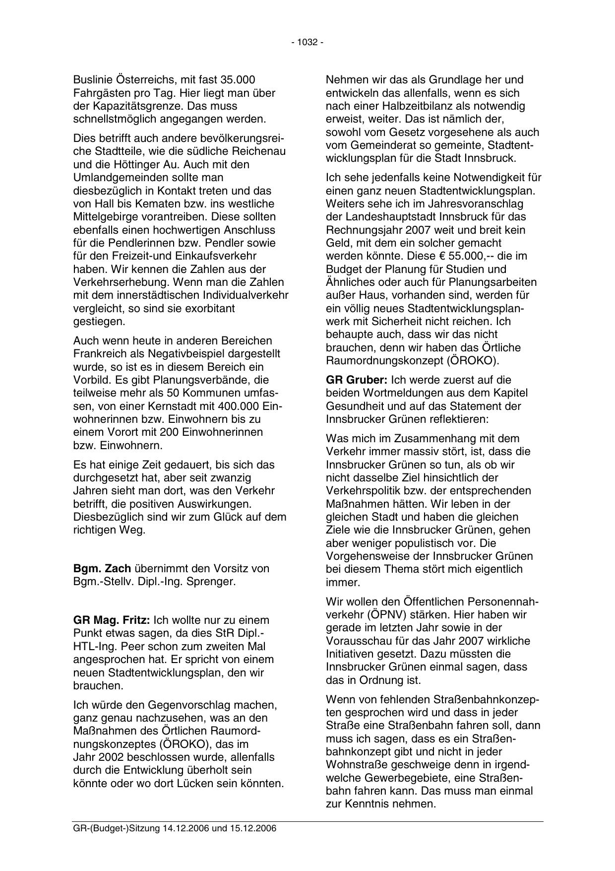 GR-(Budget-)Sitzung 14.12.2006 und 15.12.2006