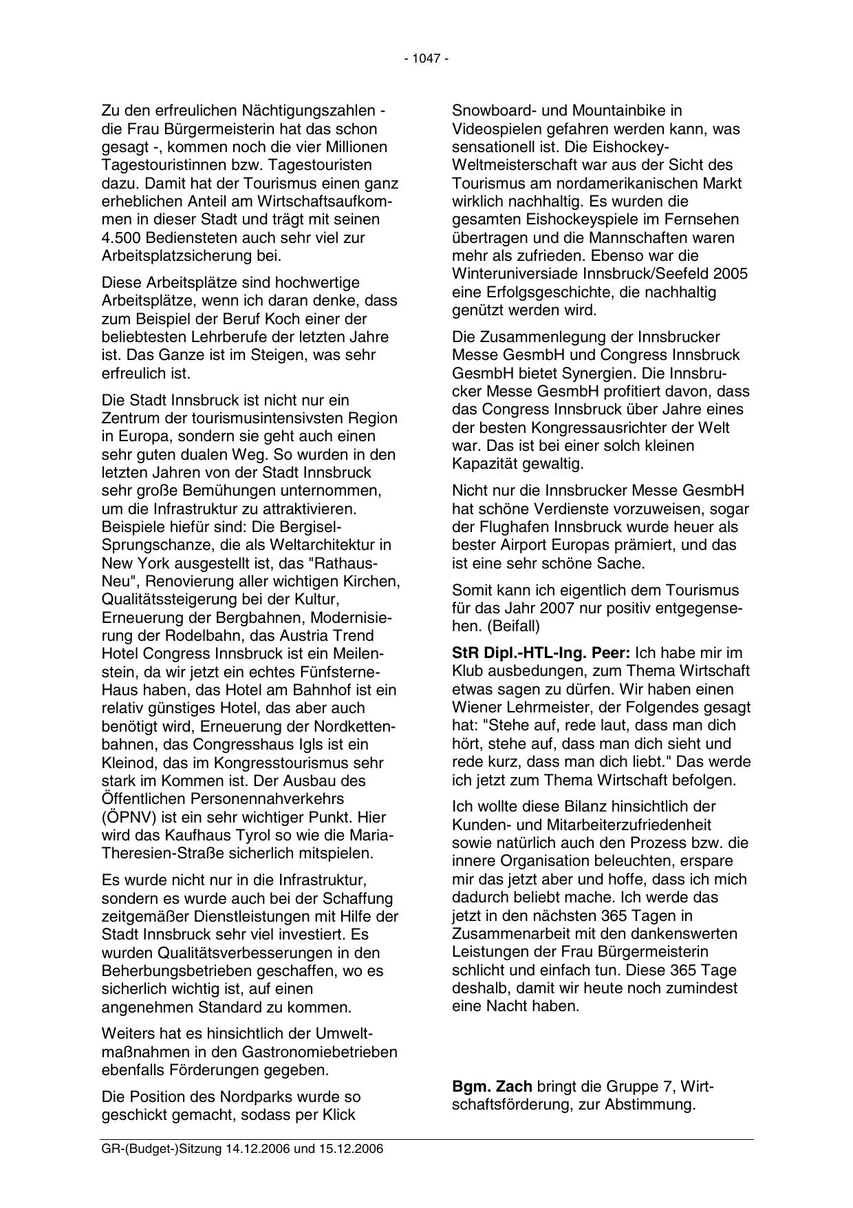 GR-(Budget-)Sitzung 14.12.2006 und 15.12.2006