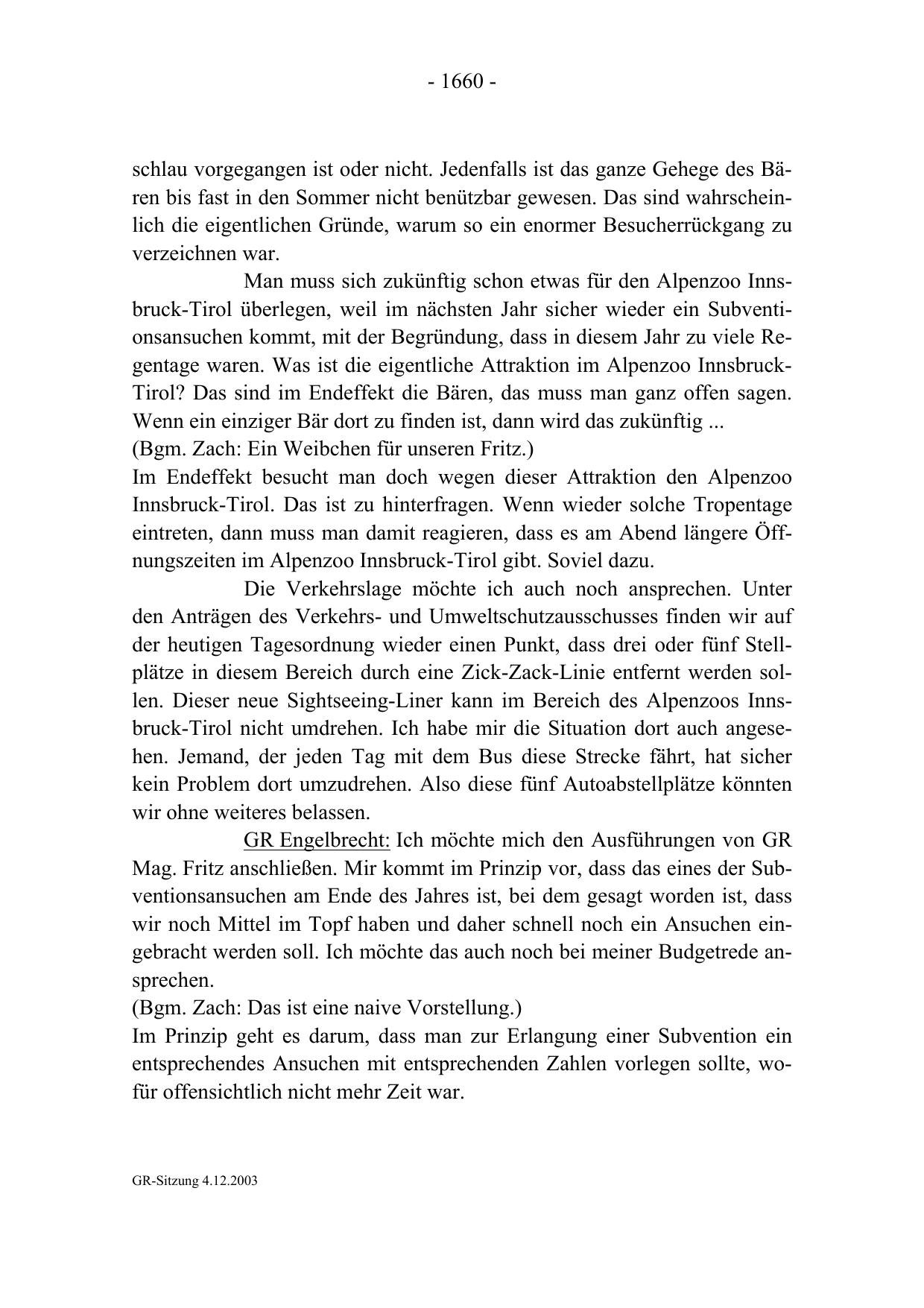 Man muss sich zukünftig schon etwas für den Alpenzoo Innsbruck-Tirol überlegen, weil im nächsten Jahr sicher wieder ein Subventionsansuchen kommt, mit der Begründung, dass in diesem Jahr zu viele Regentage waren. Was ist die eigentliche Attraktion im Alpenzoo InnsbruckTirol? Das sind im Endeffekt die Bären, das muss man ganz offen sagen.