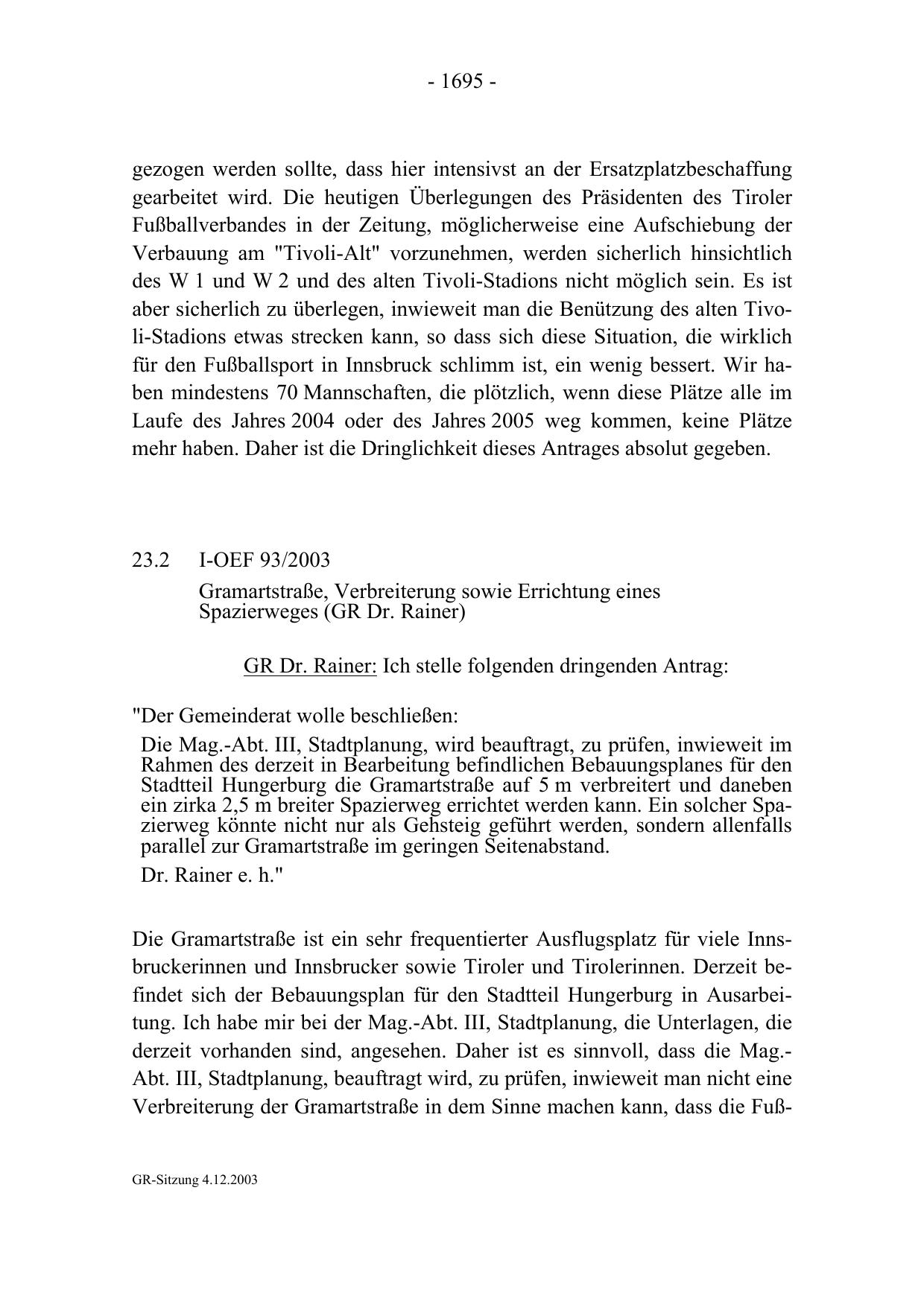 Verbreiterung der Gramartstraße in dem Sinne machen kann, dass die FußGR-Sitzung 4.12.2003
