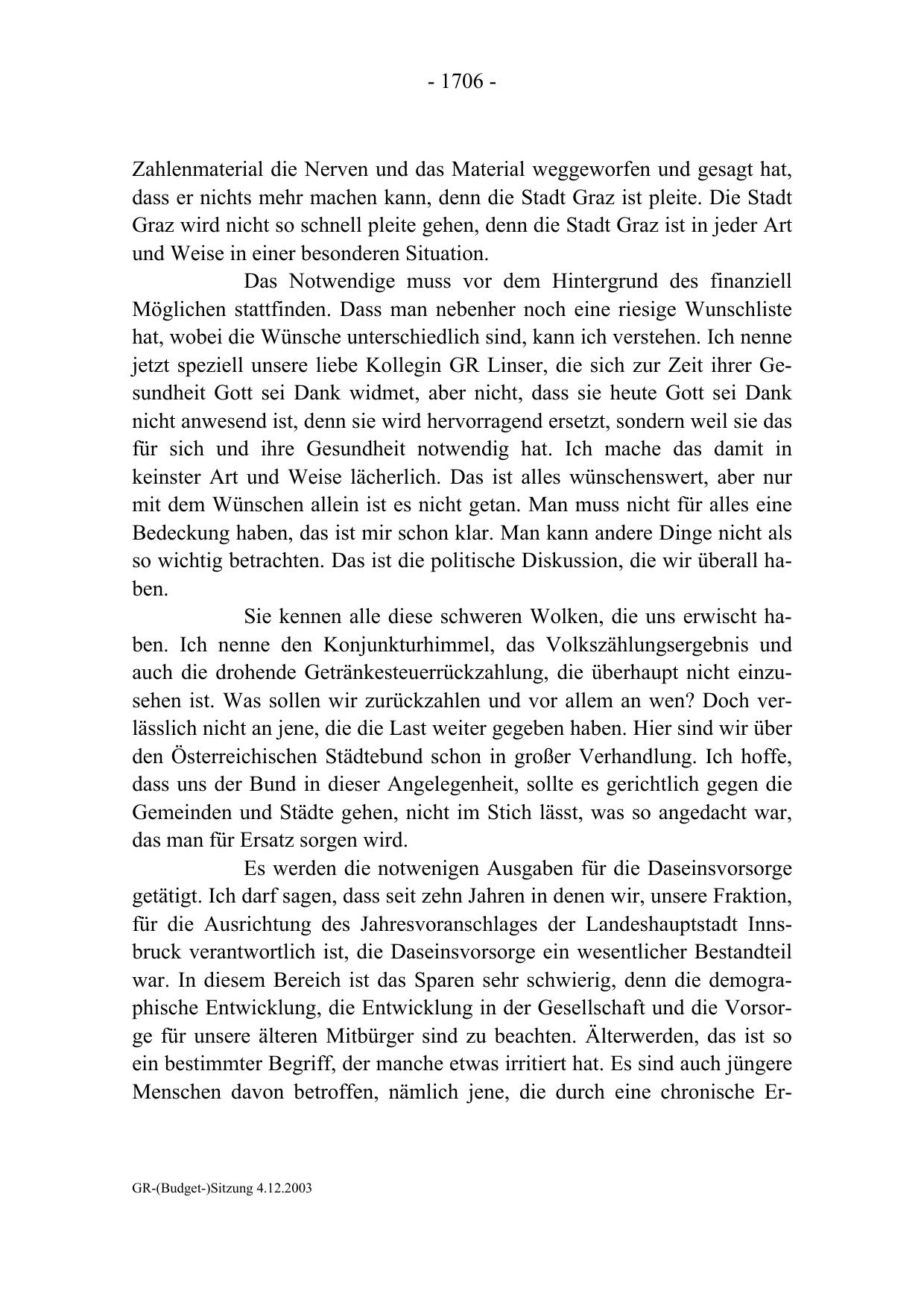 GR-(Budget-)Sitzung 4.12.2003