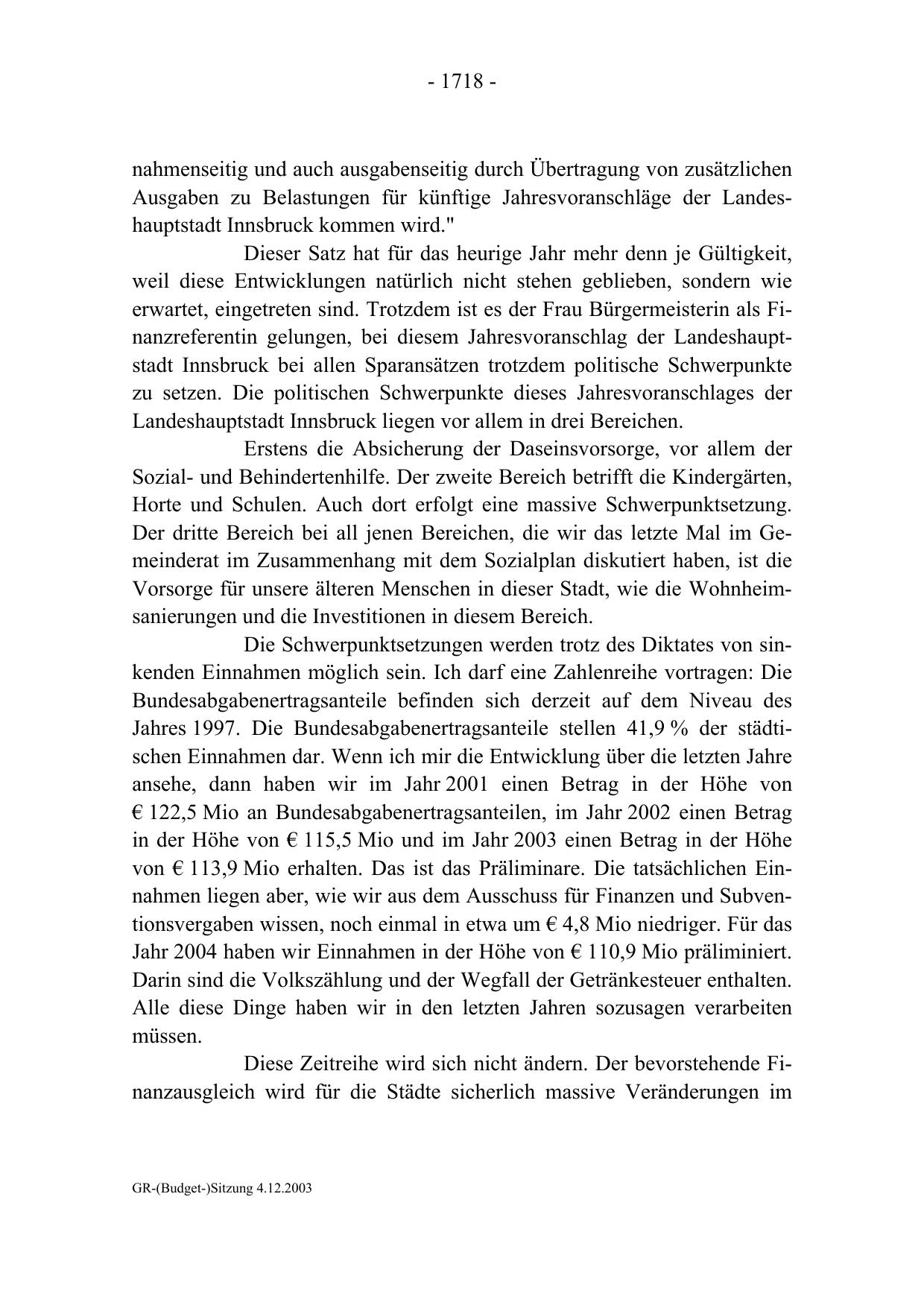 GR-(Budget-)Sitzung 4.12.2003