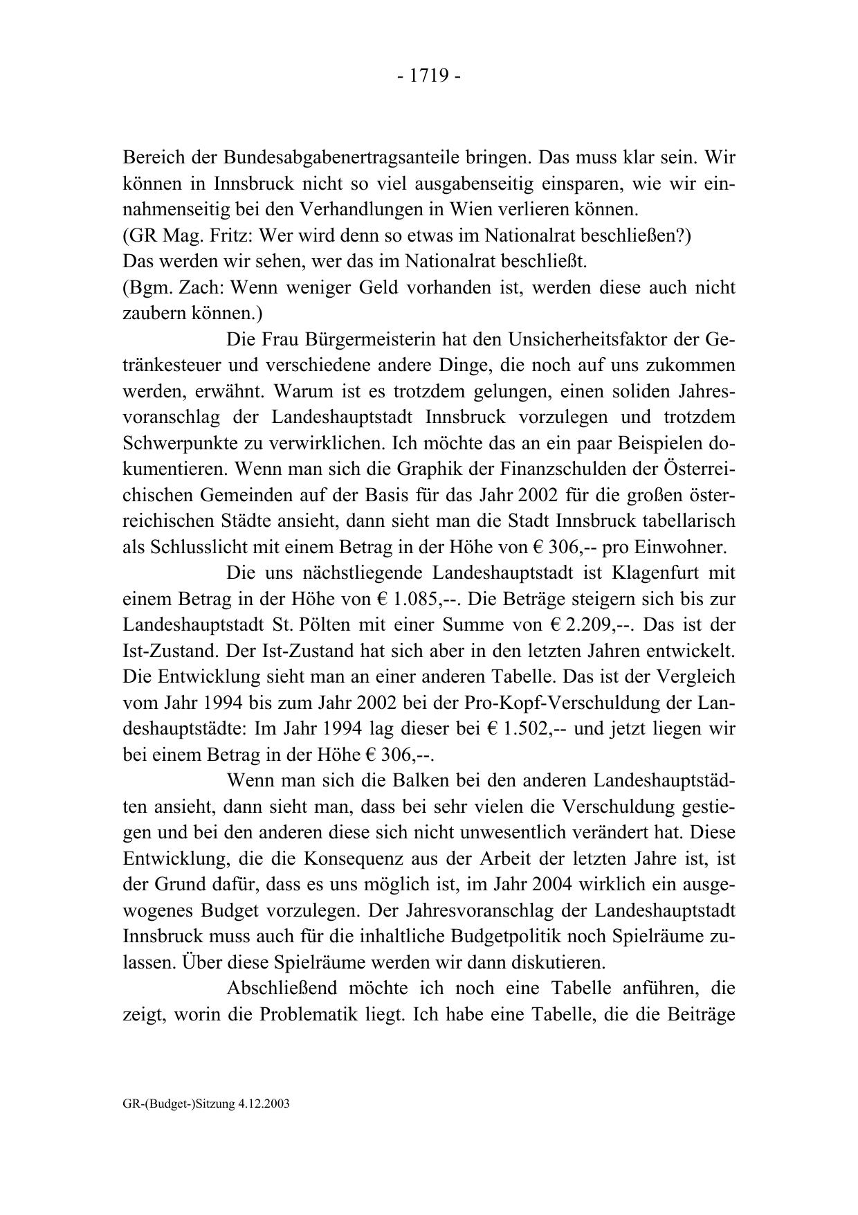 vom Jahr 1994 bis zum Jahr 2002 bei der Pro-Kopf-Verschuldung der Landeshauptstädte: Im Jahr 1994 lag dieser bei € 1.502,-- und jetzt liegen wir