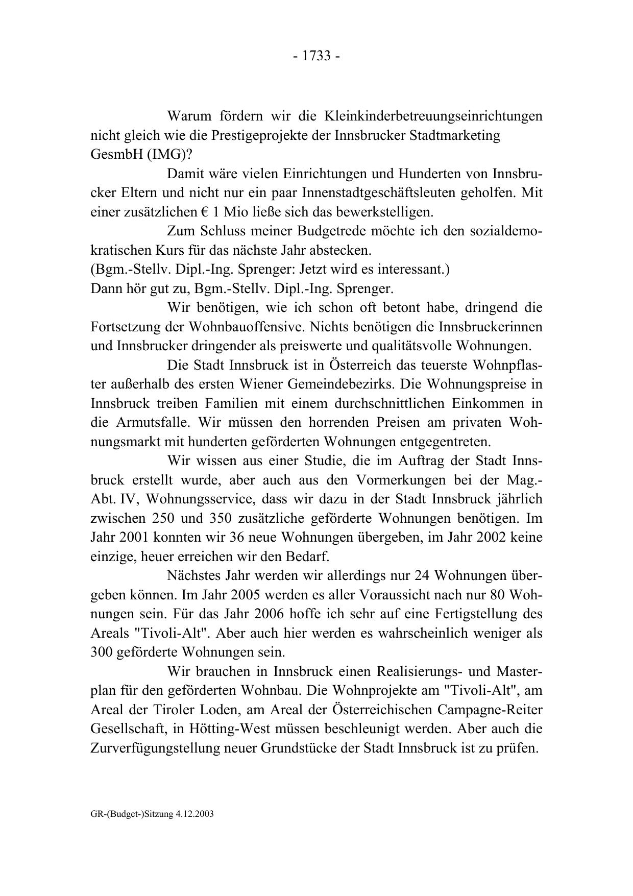 Wir wissen aus einer Studie, die im Auftrag der Stadt Innsbruck erstellt wurde, aber auch aus den Vormerkungen bei der Mag.Abt. IV, Wohnungsservice, dass wir dazu in der Stadt Innsbruck jährlich