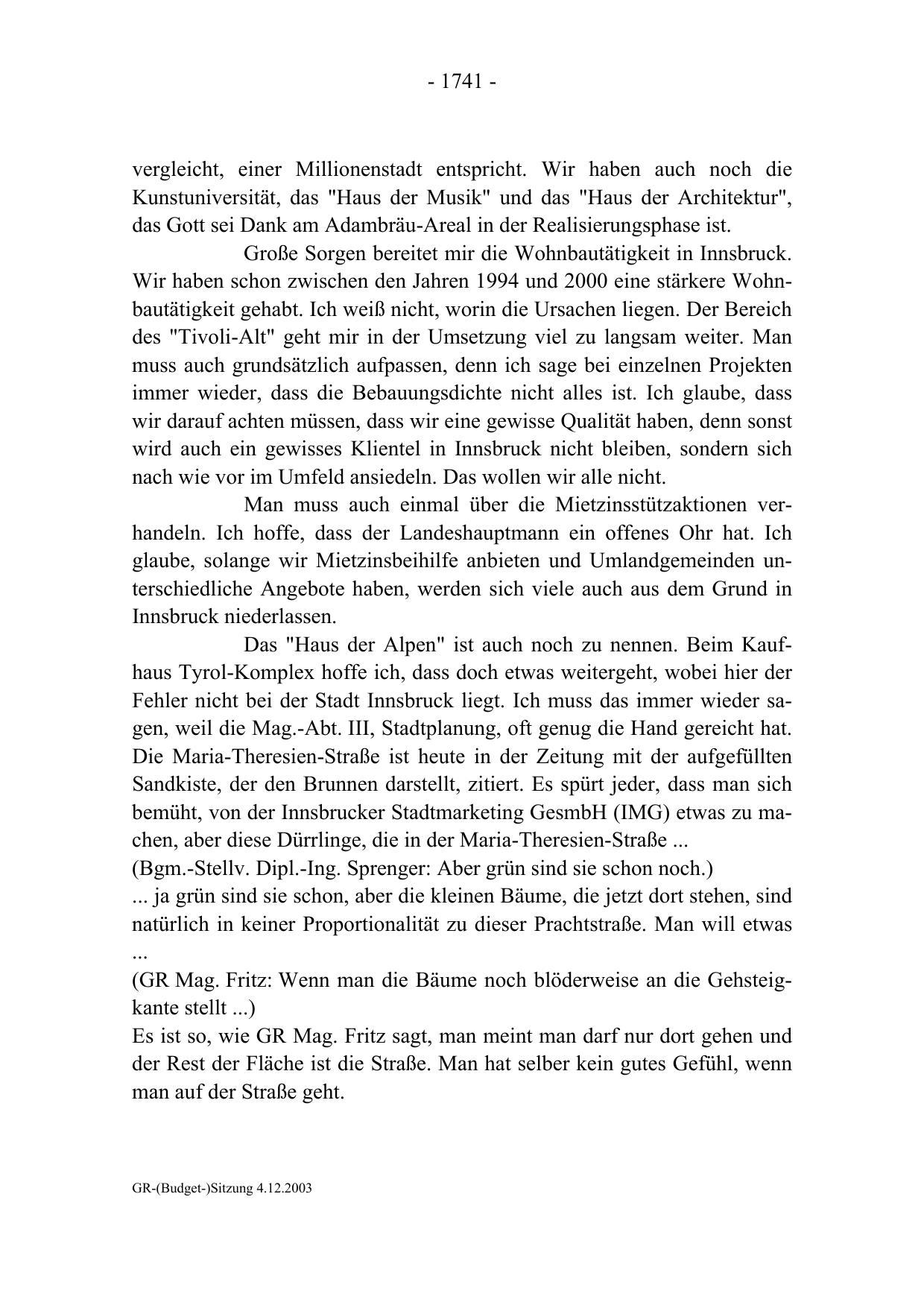Fehler nicht bei der Stadt Innsbruck liegt. Ich muss das immer wieder sagen, weil die Mag.-Abt. III, Stadtplanung, oft genug die Hand gereicht hat.