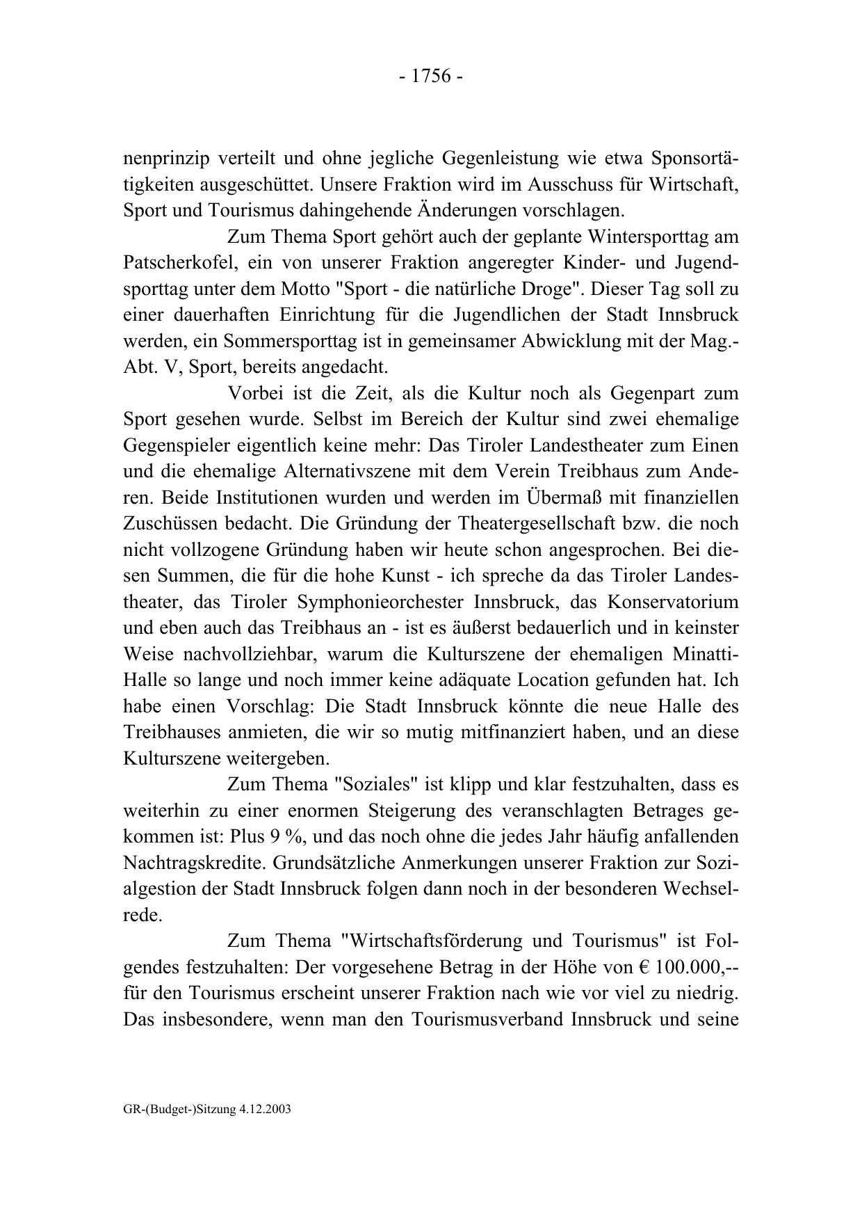 Nachtragskredite. Grundsätzliche Anmerkungen unserer Fraktion zur Sozialgestion der Stadt Innsbruck folgen dann noch in der besonderen Wechselrede.
