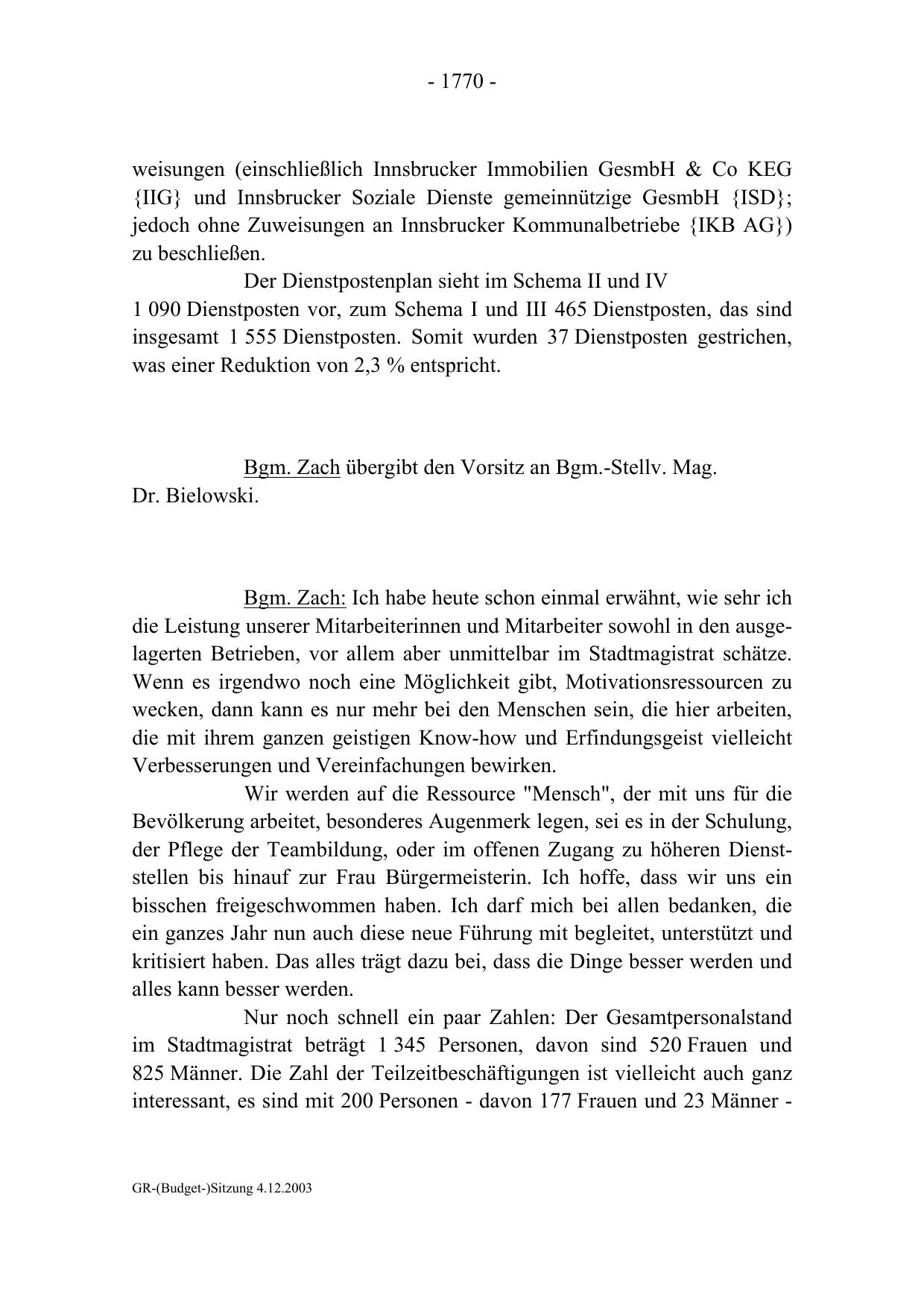 GR-(Budget-)Sitzung 4.12.2003