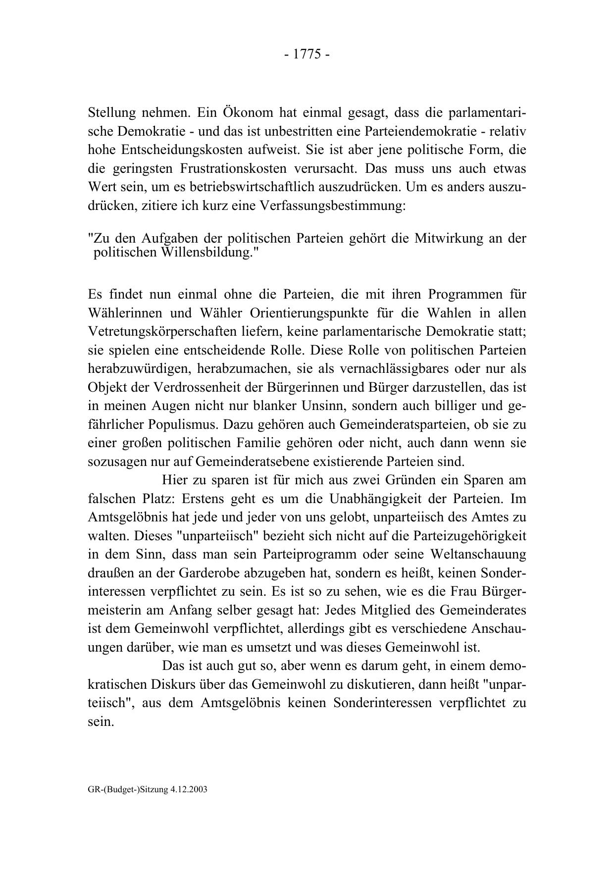 draußen an der Garderobe abzugeben hat, sondern es heißt, keinen Sonderinteressen verpflichtet zu sein. Es ist so zu sehen, wie es die Frau Bürgermeisterin am Anfang selber gesagt hat: Jedes Mitglied des Gemeinderates