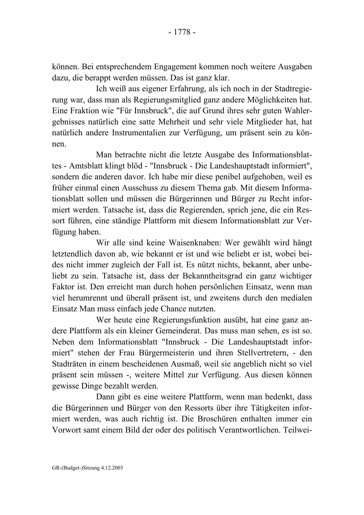 Eine Fraktion wie "Für Innsbruck", die auf Grund ihres sehr guten Wahlergebnisses natürlich eine satte Mehrheit und sehr viele Mitglieder hat, hat
