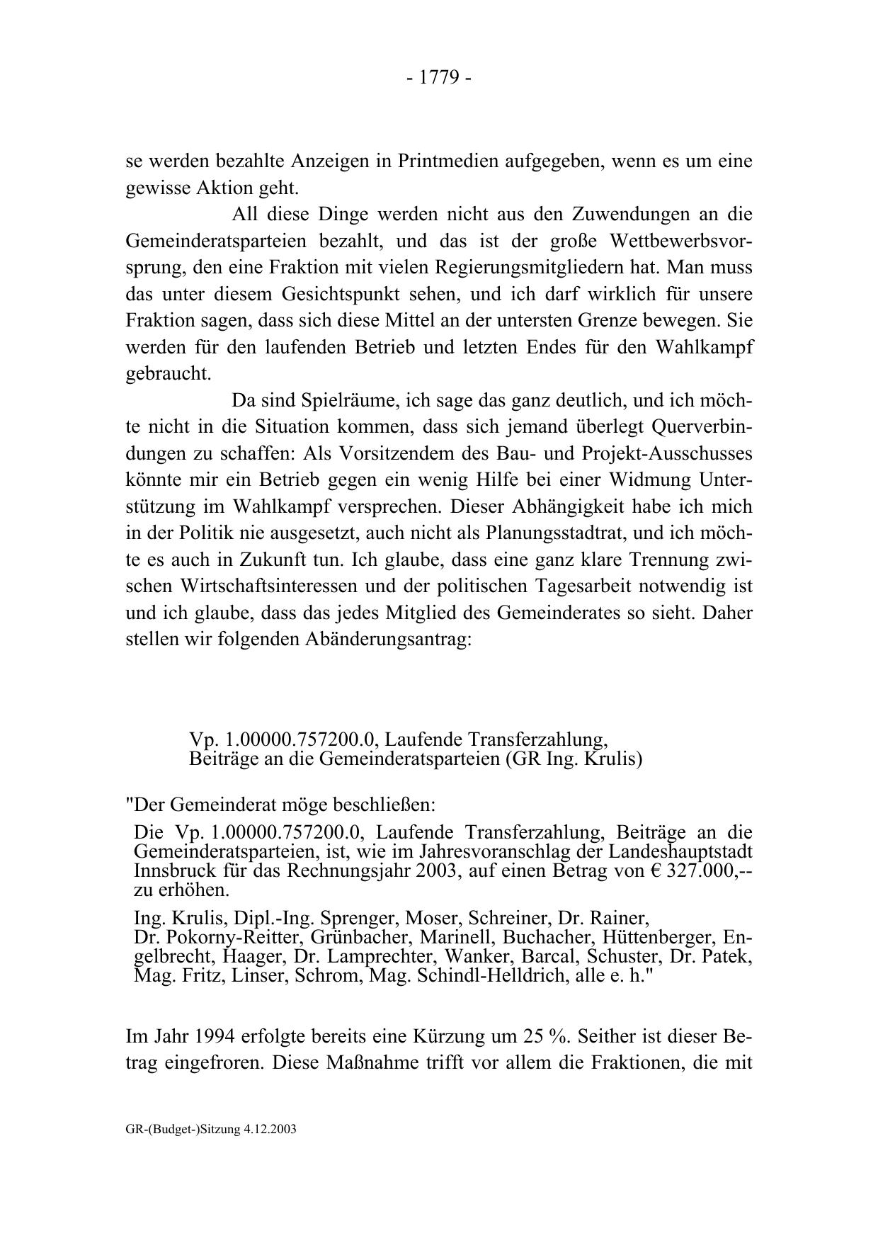 Beiträge an die Gemeinderatsparteien (GR Ing. Krulis)