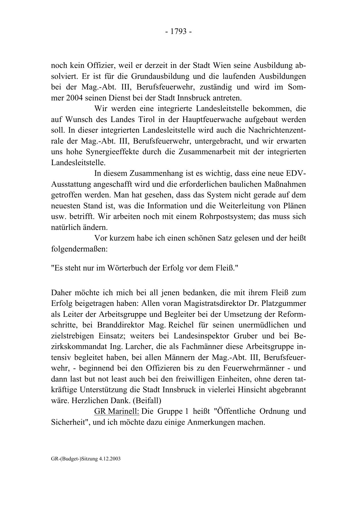 bei der Mag.-Abt. III, Berufsfeuerwehr, zuständig und wird im Sommer 2004 seinen Dienst bei der Stadt Innsbruck antreten.