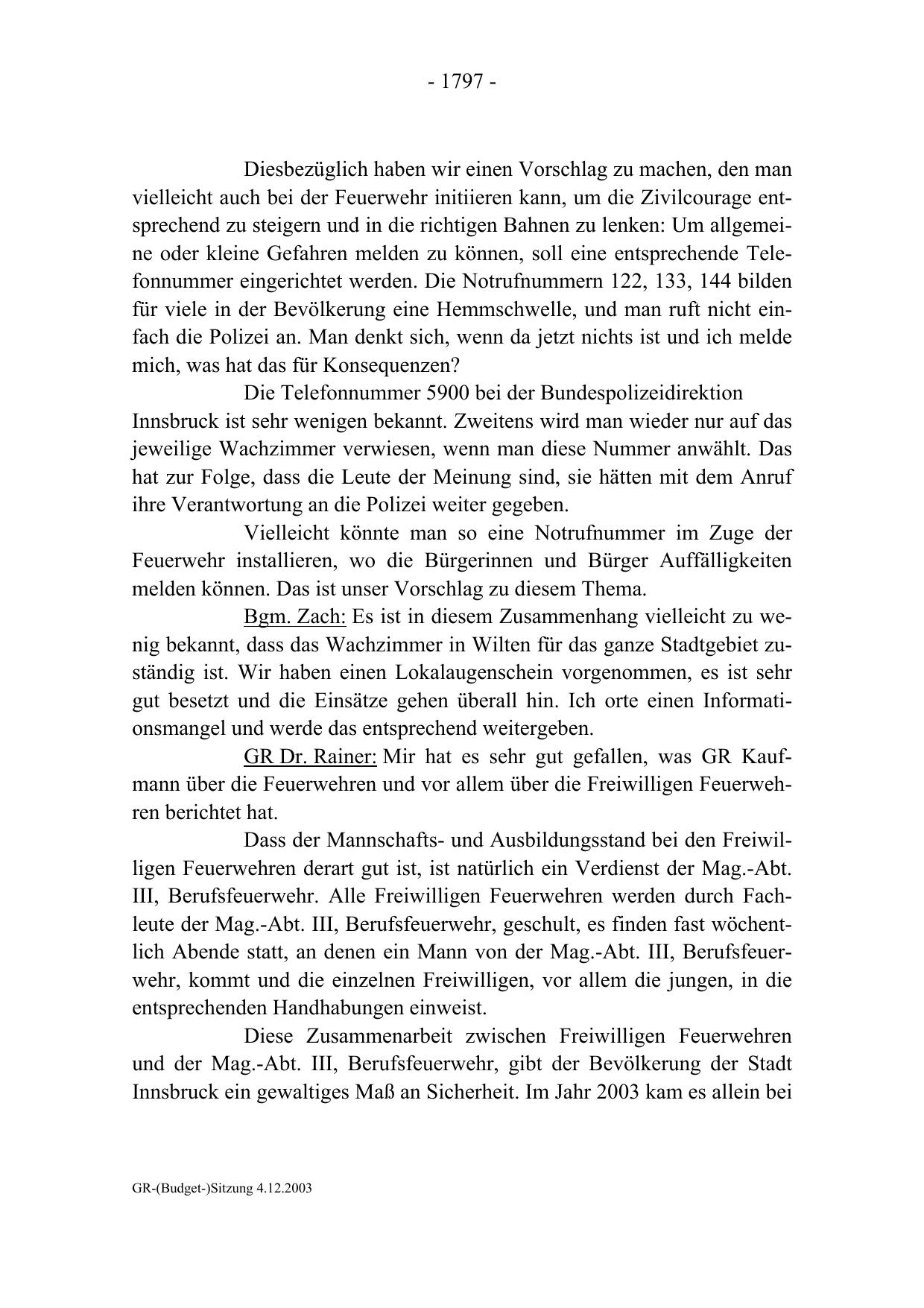 GR Dr. Rainer: Mir hat es sehr gut gefallen, was GR Kaufmann über die Feuerwehren und vor allem über die Freiwilligen Feuerwehren berichtet hat.
