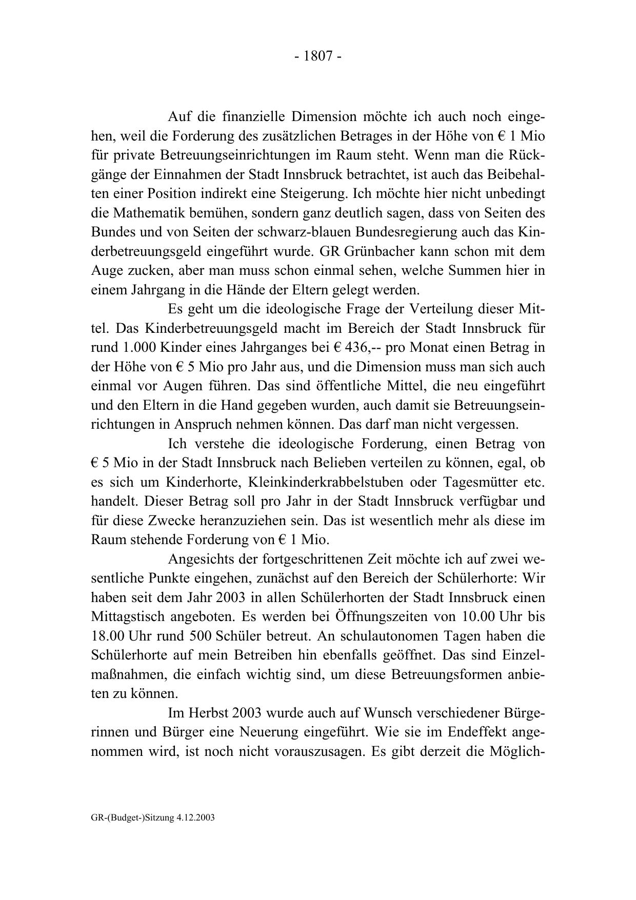für private Betreuungseinrichtungen im Raum steht. Wenn man die Rückgänge der Einnahmen der Stadt Innsbruck betrachtet, ist auch das Beibehalten einer Position indirekt eine Steigerung. Ich möchte hier nicht unbedingt