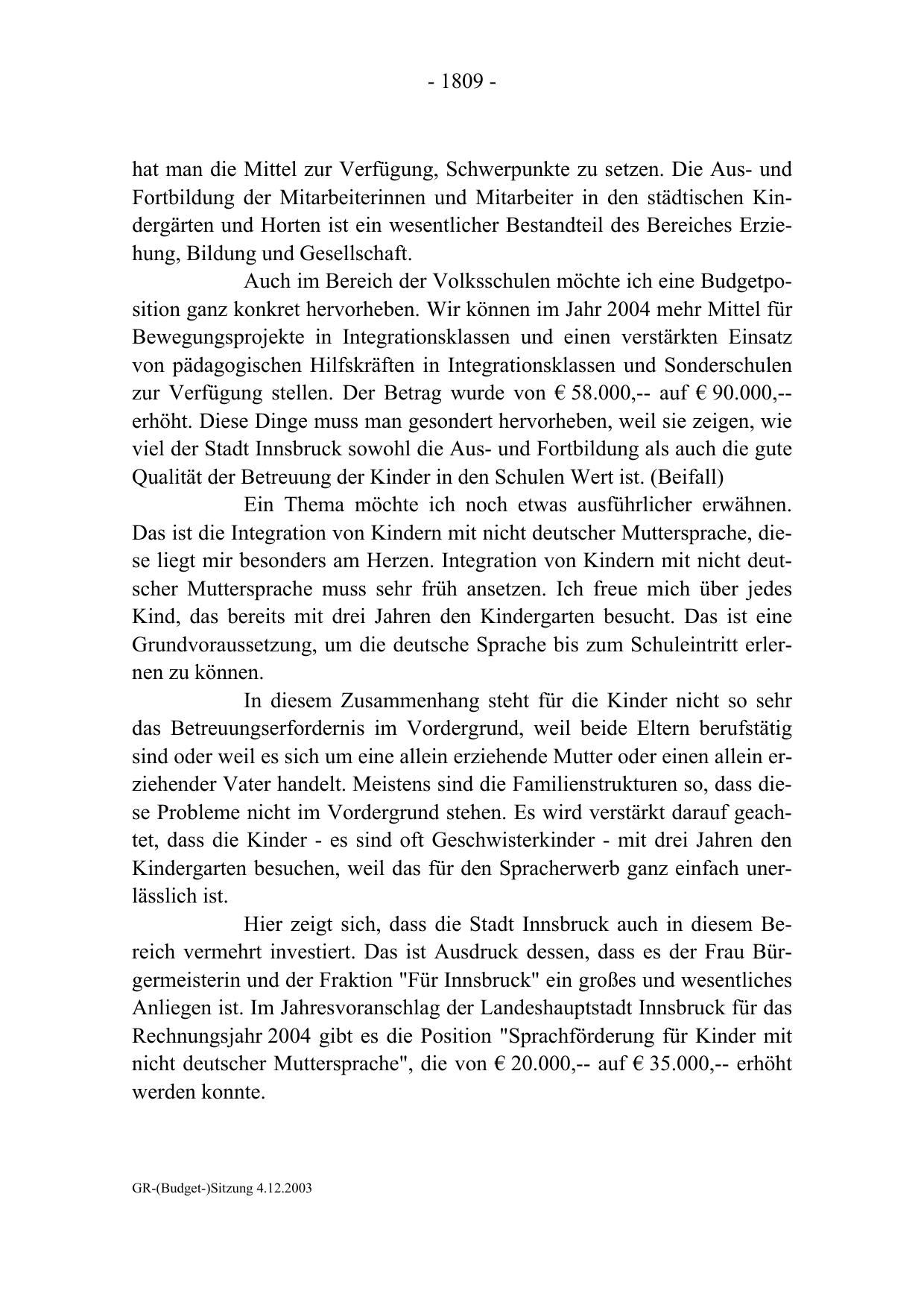 GR-(Budget-)Sitzung 4.12.2003