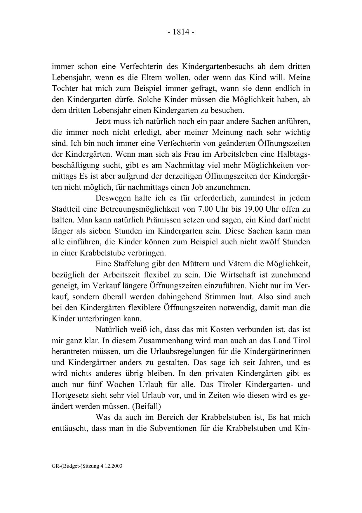 GR-(Budget-)Sitzung 4.12.2003