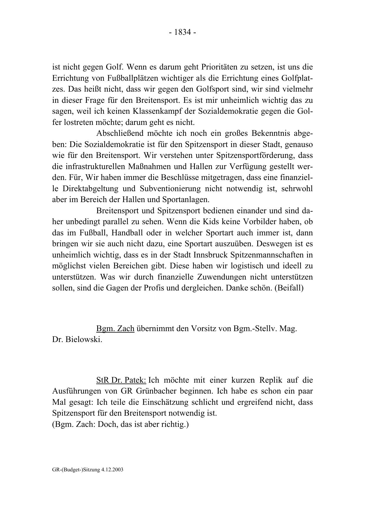 GR-(Budget-)Sitzung 4.12.2003