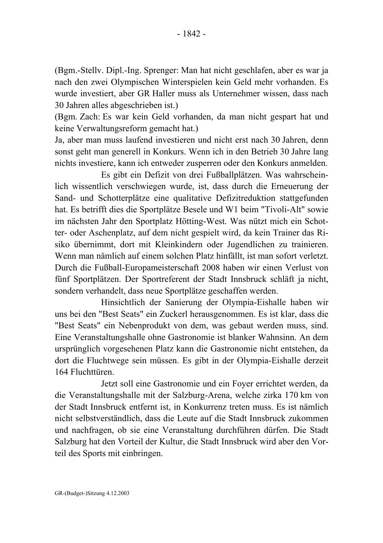 im nächsten Jahr den Sportplatz Hötting-West. Was nützt mich ein Schotter- oder Aschenplatz, auf dem nicht gespielt wird, da kein Trainer das Risiko übernimmt, dort mit Kleinkindern oder Jugendlichen zu trainieren.