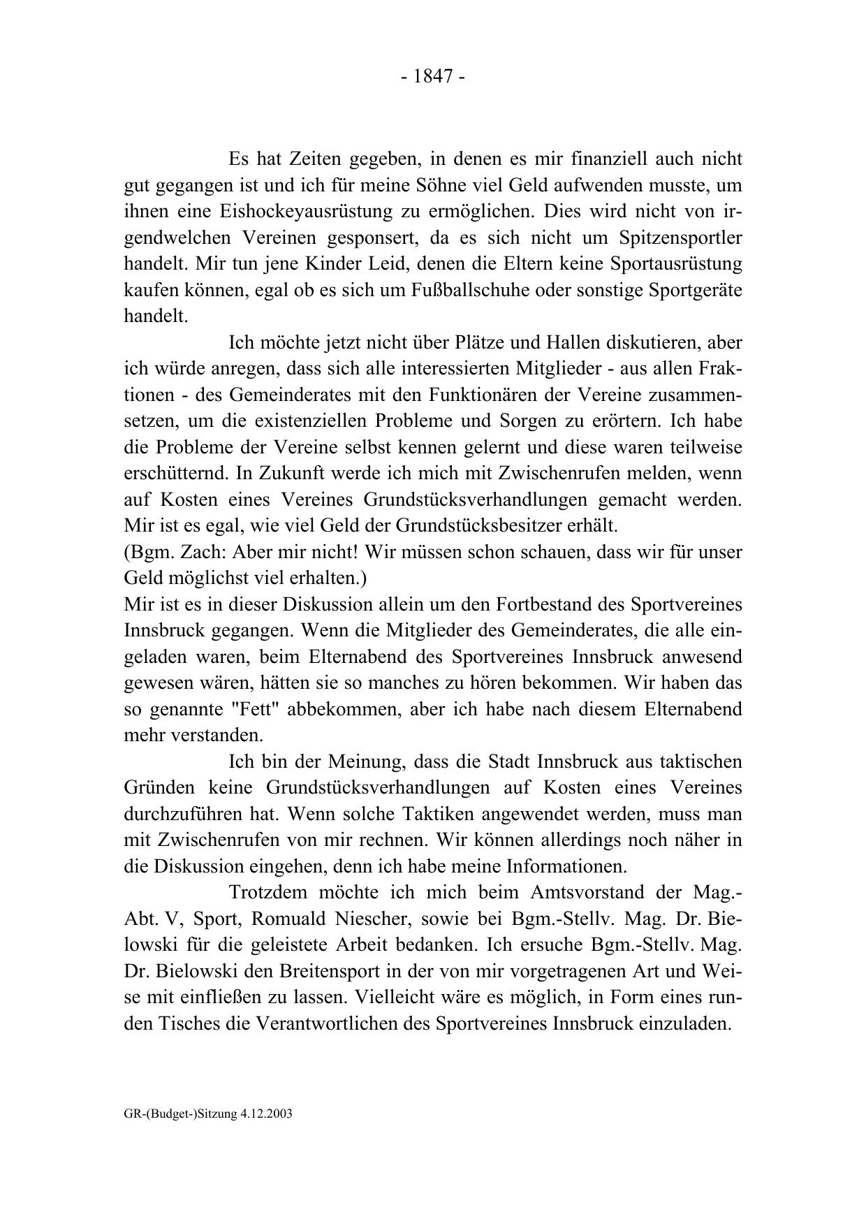 Innsbruck gegangen. Wenn die Mitglieder des Gemeinderates, die alle eingeladen waren, beim Elternabend des Sportvereines Innsbruck anwesend