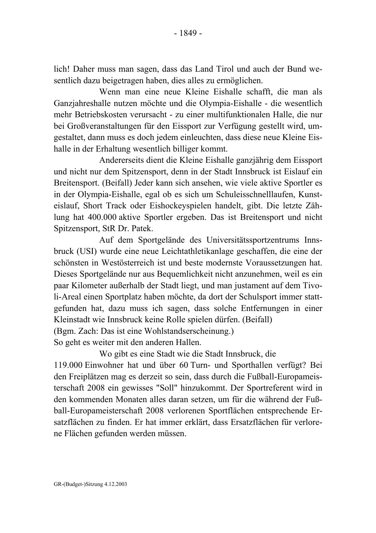 Kleinstadt wie Innsbruck keine Rolle spielen dürfen. (Beifall)