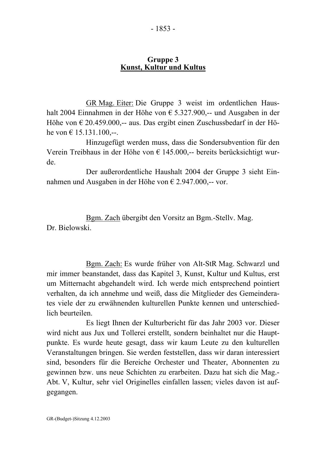 GR Mag. Eiter: Die Gruppe 3 weist im ordentlichen Haushalt 2004 Einnahmen in der Höhe von € 5.327.900,-- und Ausgaben in der