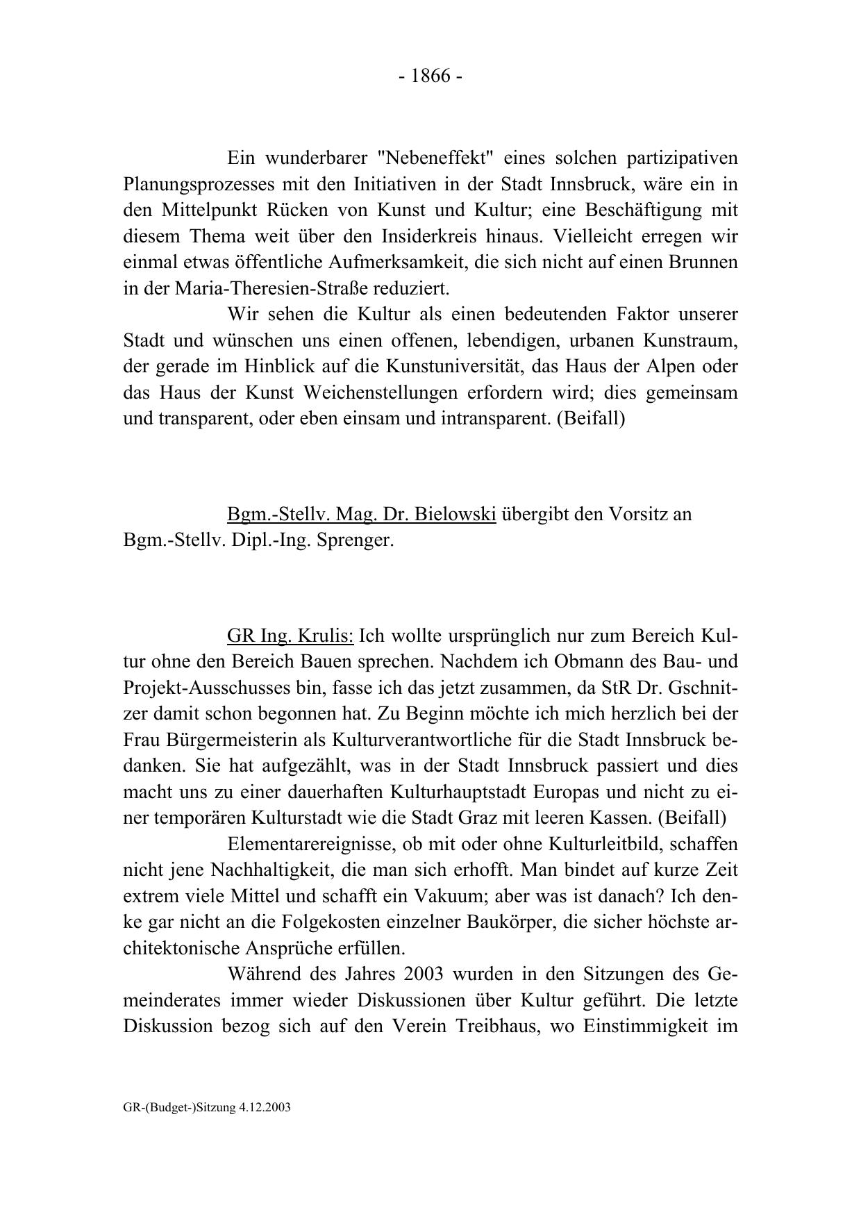 GR Ing. Krulis: Ich wollte ursprünglich nur zum Bereich Kultur ohne den Bereich Bauen sprechen. Nachdem ich Obmann des Bau- und