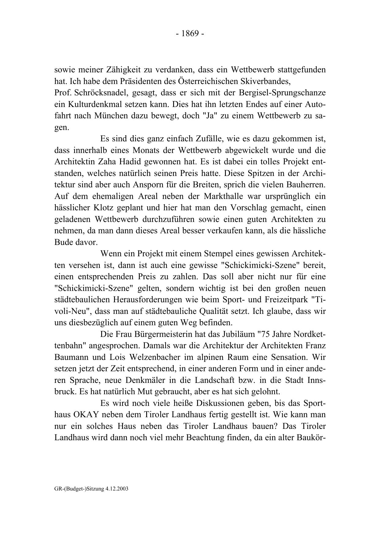 GR-(Budget-)Sitzung 4.12.2003