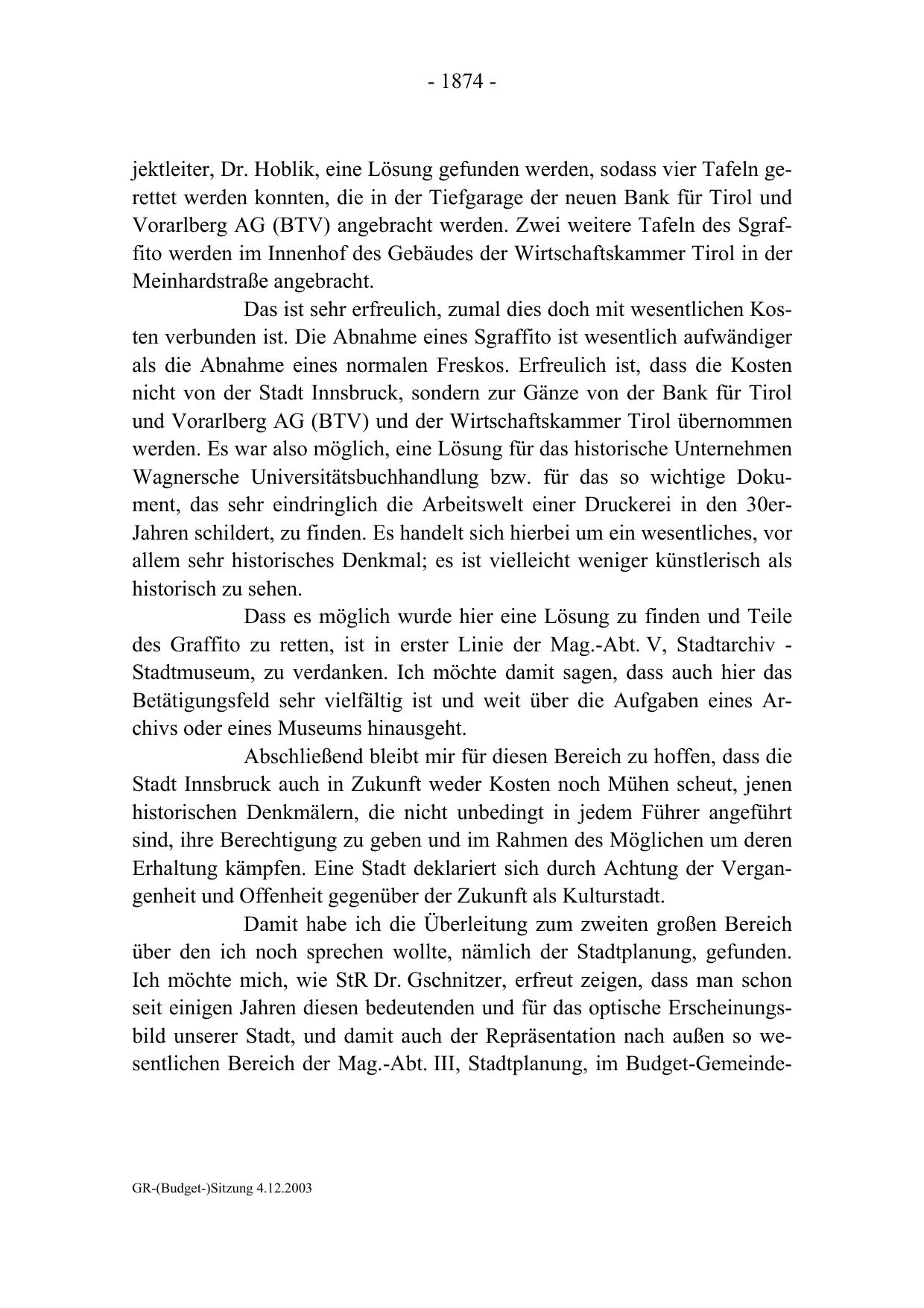 seit einigen Jahren diesen bedeutenden und für das optische Erscheinungsbild unserer Stadt, und damit auch der Repräsentation nach außen so wesentlichen Bereich der Mag.-Abt. III, Stadtplanung, im Budget-Gemeinde-