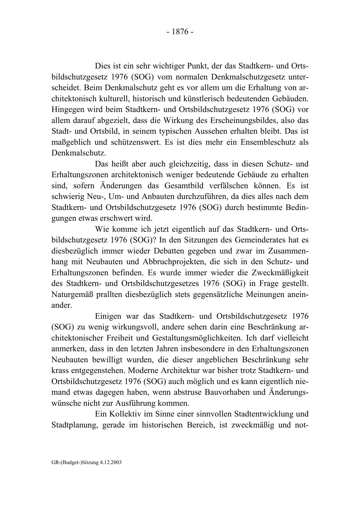 Wie komme ich jetzt eigentlich auf das Stadtkern- und Ortsbildschutzgesetz 1976 (SOG)? In den Sitzungen des Gemeinderates hat es