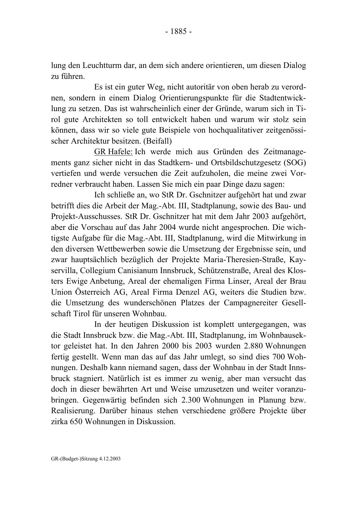 Projekt-Ausschusses. StR Dr. Gschnitzer hat mit dem Jahr 2003 aufgehört,