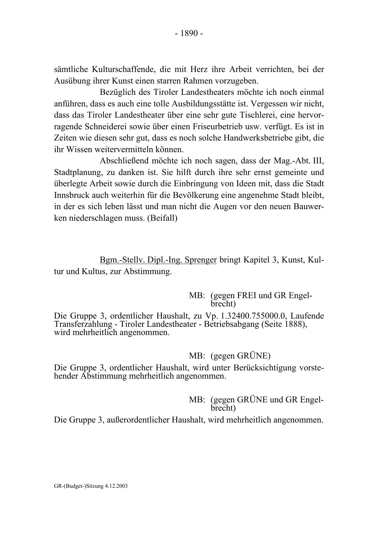 GR-(Budget-)Sitzung 4.12.2003