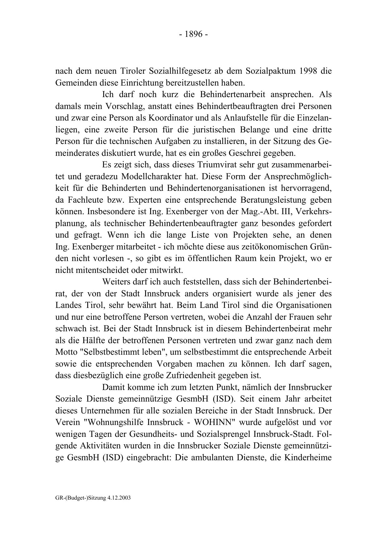 Weiters darf ich auch feststellen, dass sich der Behindertenbeirat, der von der Stadt Innsbruck anders organisiert wurde als jener des