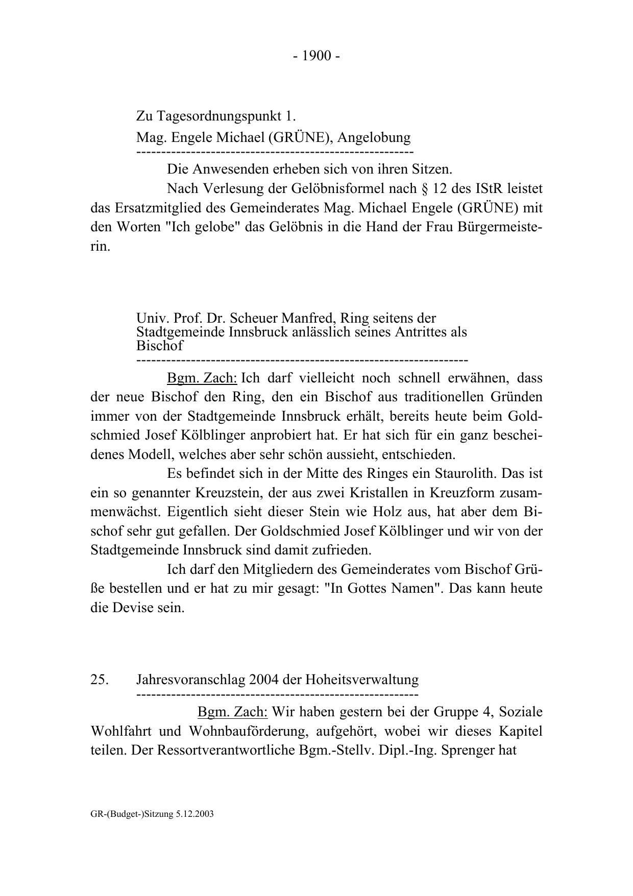 GR-(Budget-)Sitzung 5.12.2003