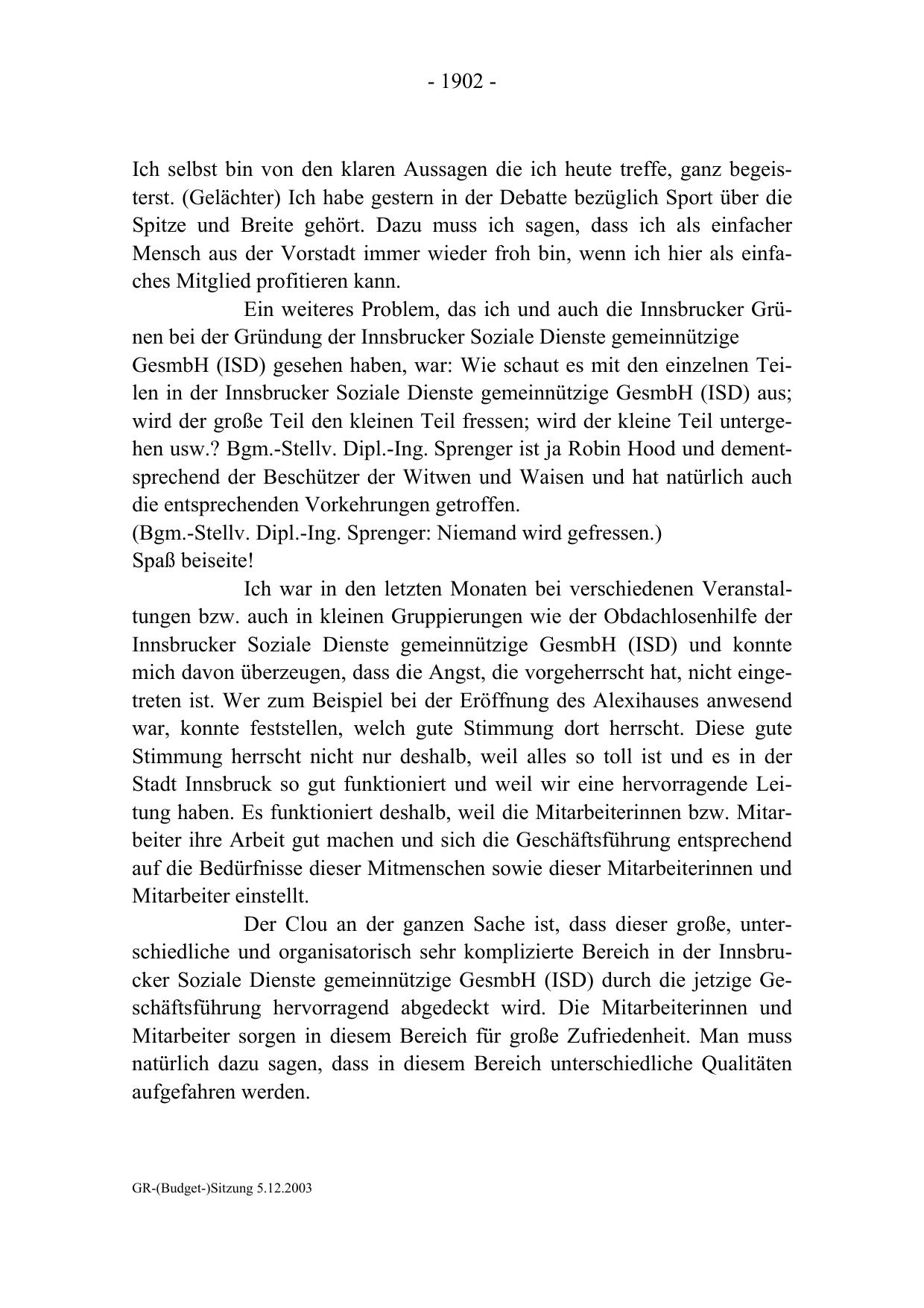 Stadt Innsbruck so gut funktioniert und weil wir eine hervorragende Leitung haben. Es funktioniert deshalb, weil die Mitarbeiterinnen bzw. Mitarbeiter ihre Arbeit gut machen und sich die Geschäftsführung entsprechend