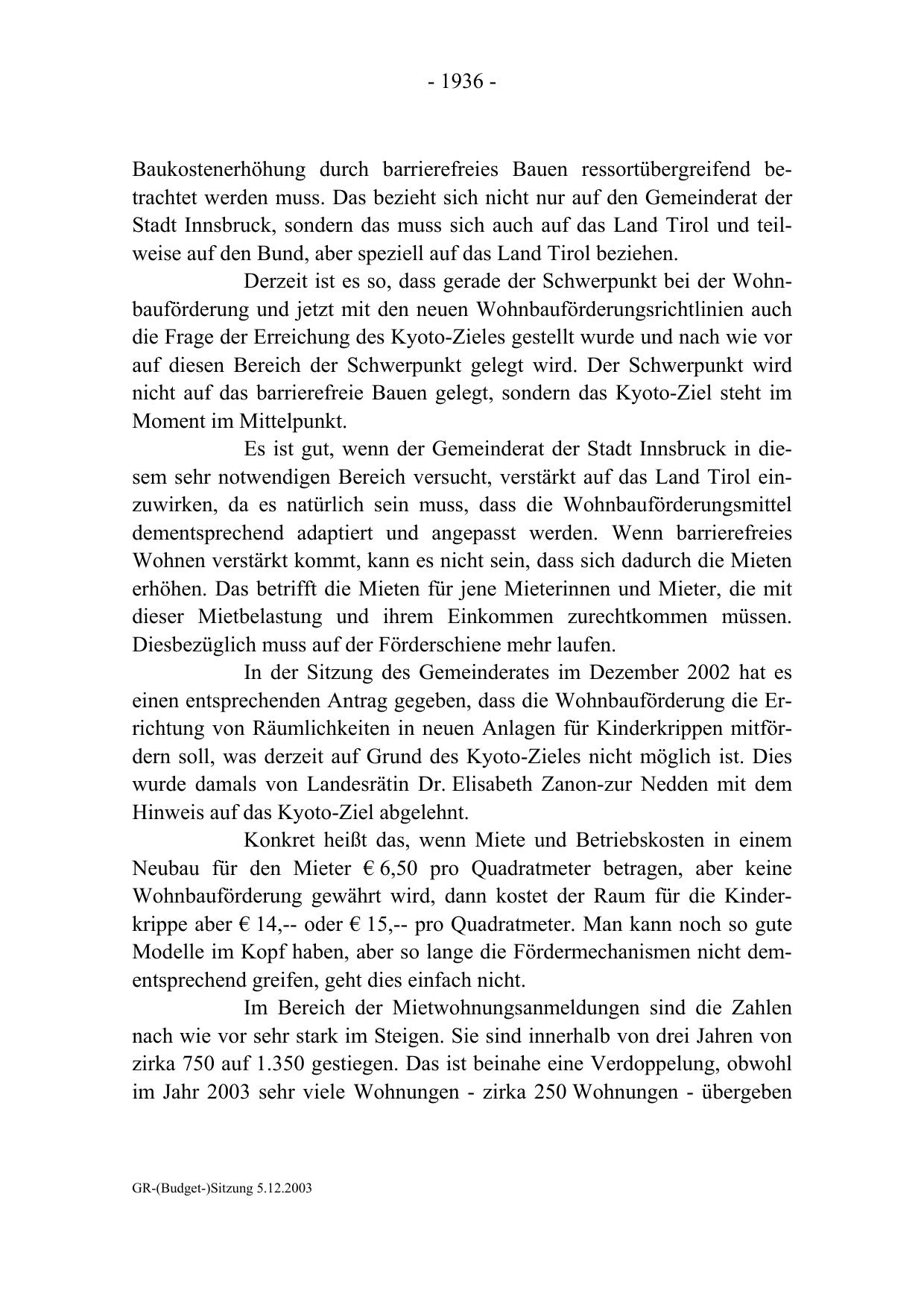GR-(Budget-)Sitzung 5.12.2003