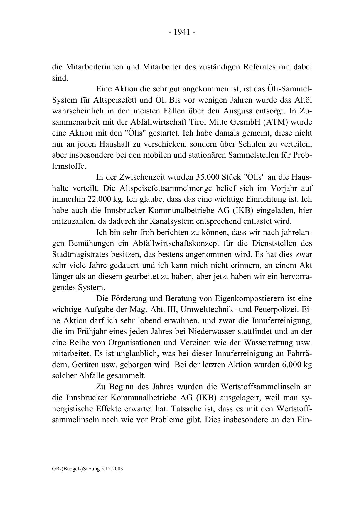 die Innsbrucker Kommunalbetriebe AG (IKB) ausgelagert, weil man synergistische Effekte erwartet hat. Tatsache ist, dass es mit den Wertstoffsammelinseln nach wie vor Probleme gibt. Dies insbesondere an den Ein-
