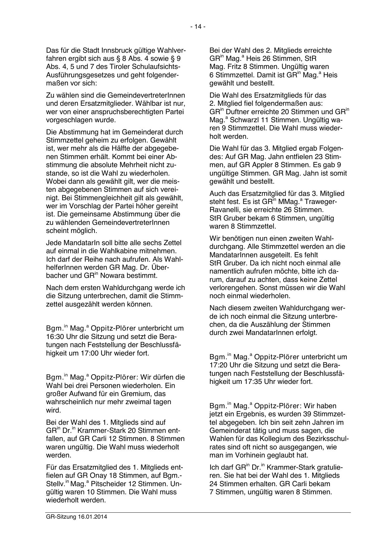 Mag.a Schwarzl 11 Stimmen. Ungültig waren 9 Stimmzettel. Die Wahl muss wiederholt werden.