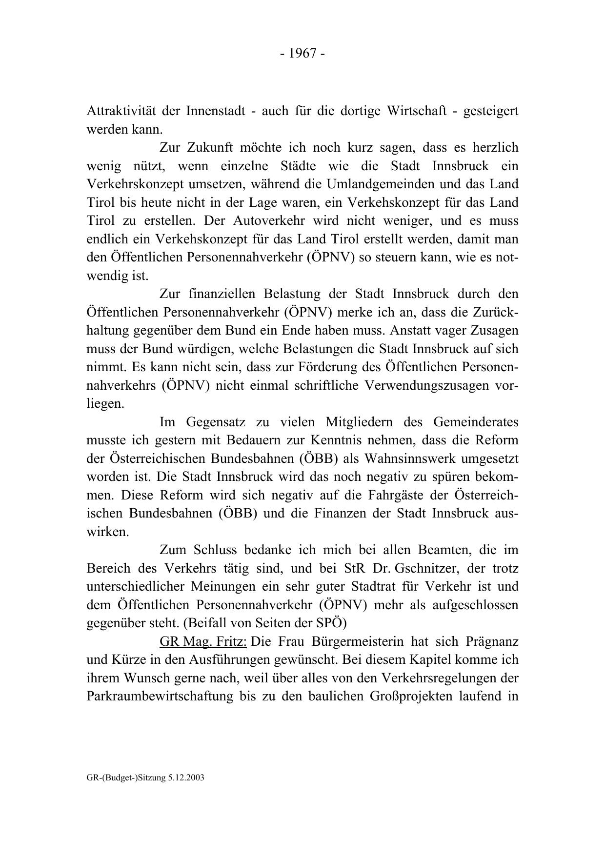 GR-(Budget-)Sitzung 5.12.2003