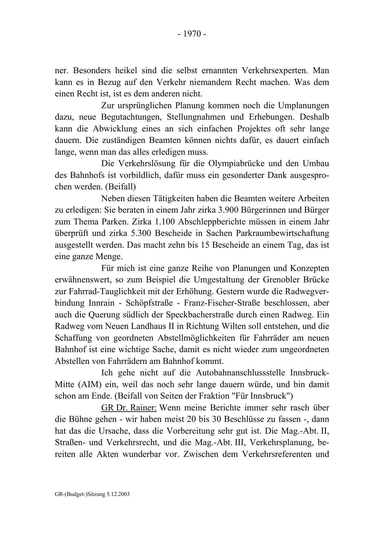 GR Dr. Rainer: Wenn meine Berichte immer sehr rasch über