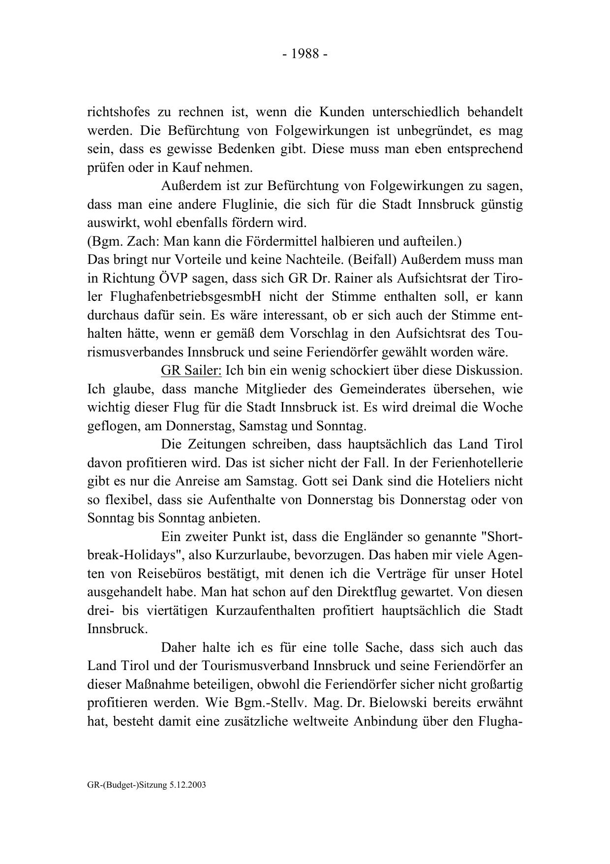 in Richtung ÖVP sagen, dass sich GR Dr. Rainer als Aufsichtsrat der Tiroler FlughafenbetriebsgesmbH nicht der Stimme enthalten soll, er kann